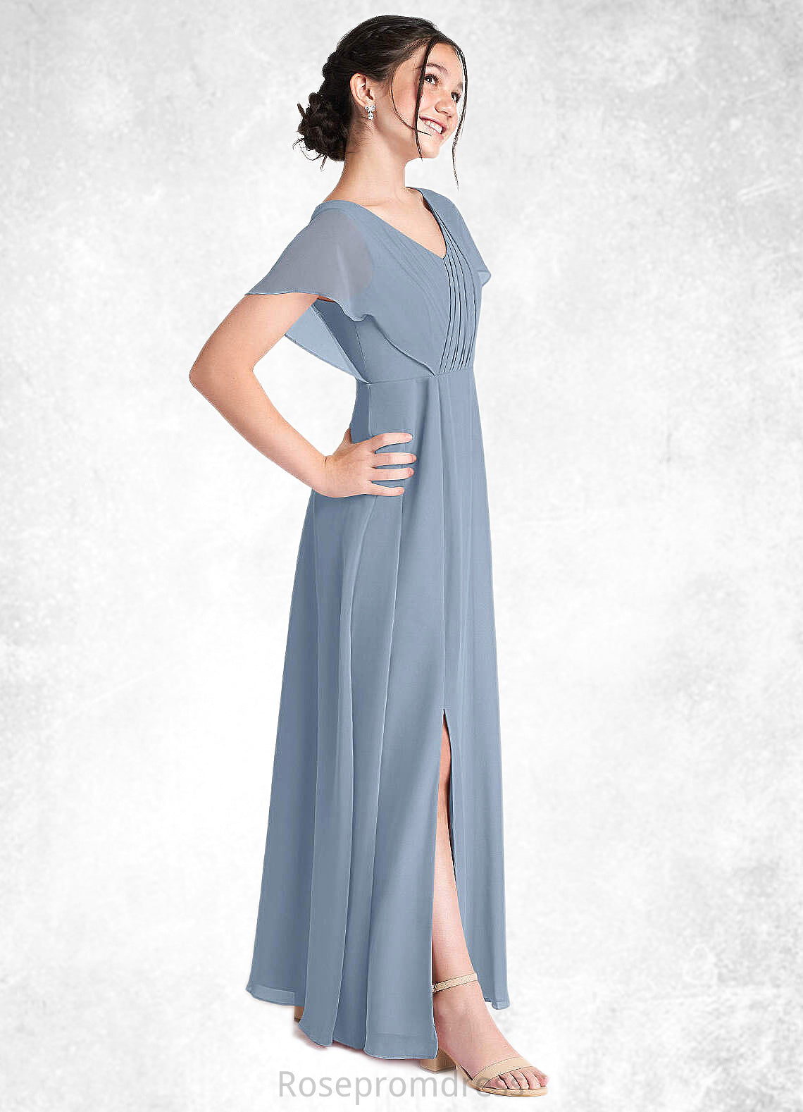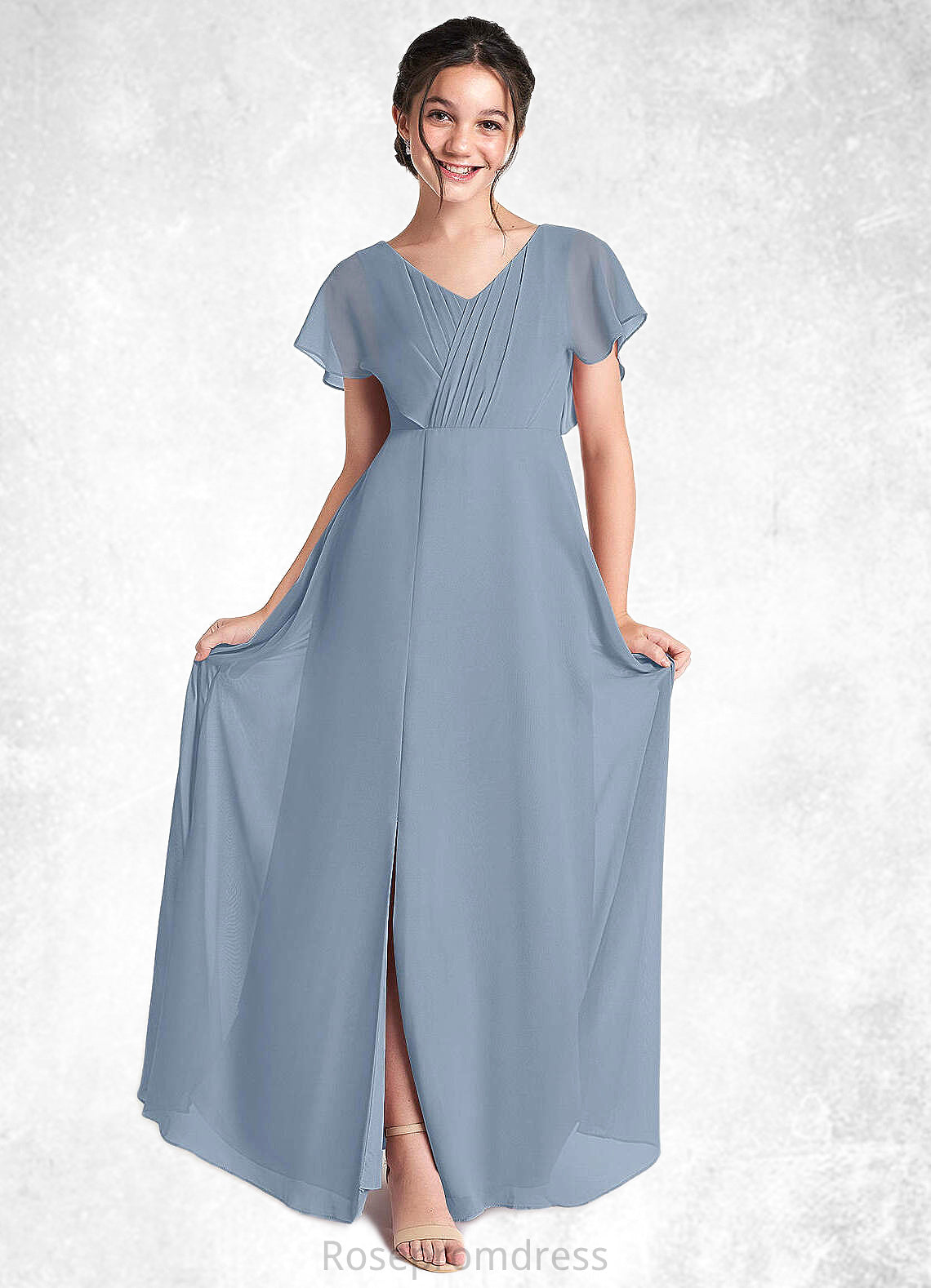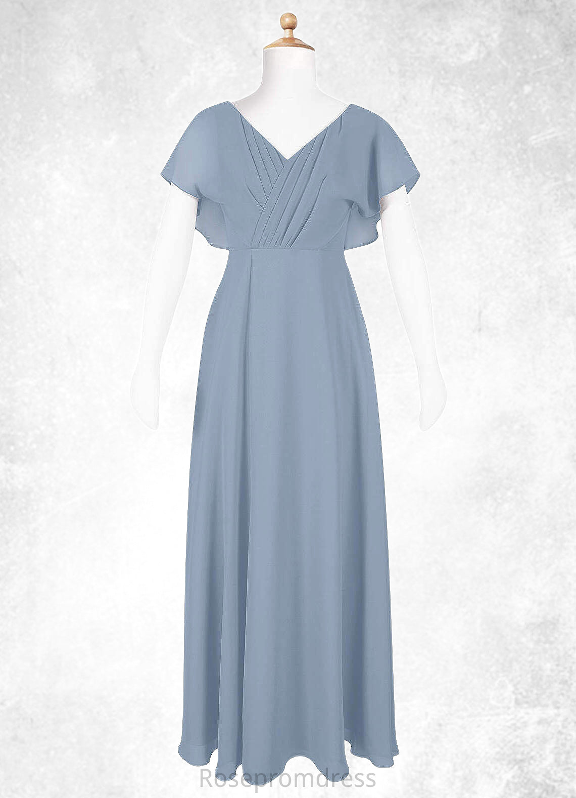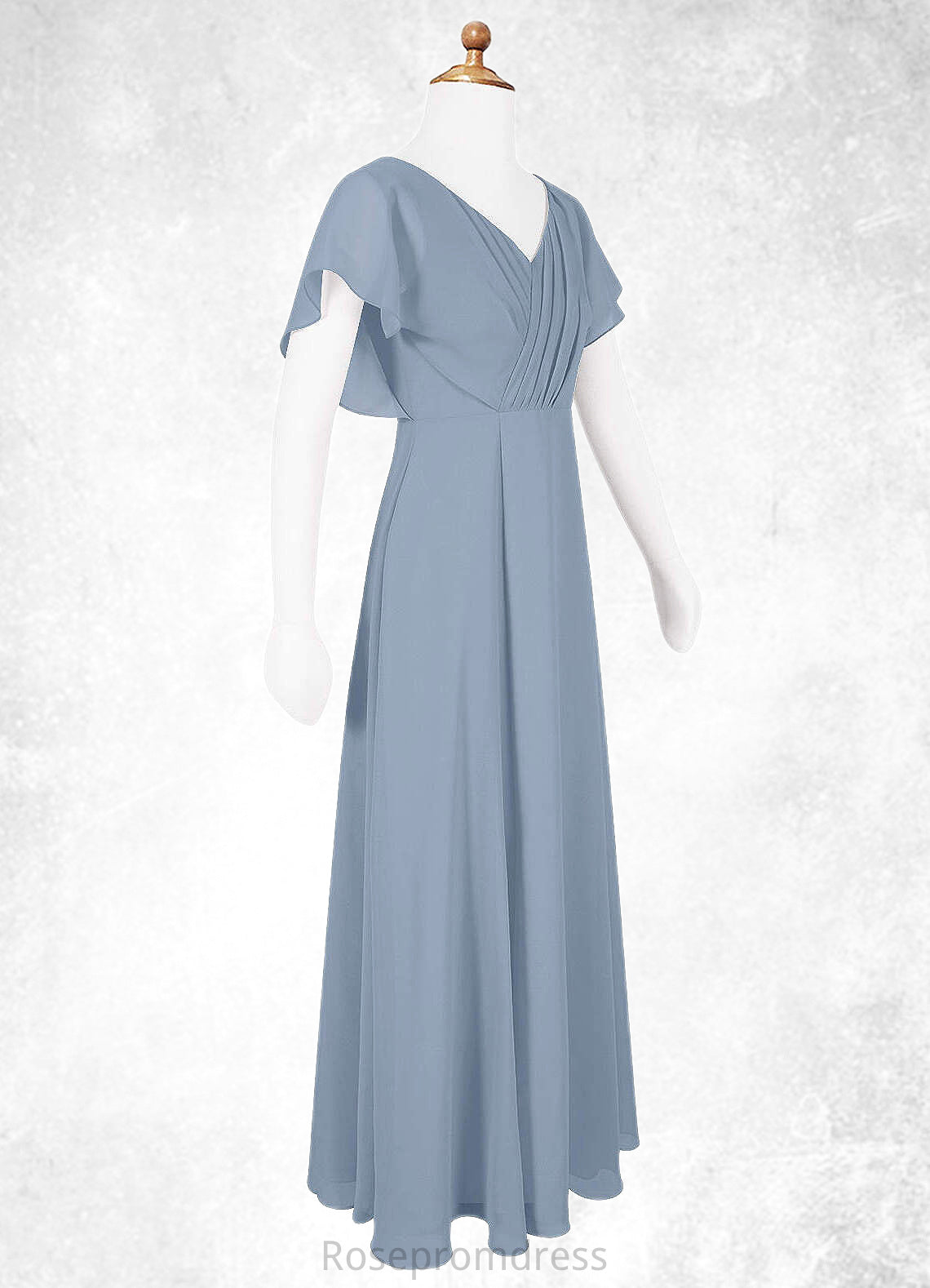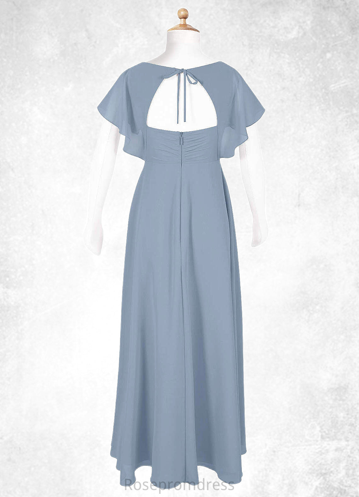 Lacey A-Line Ruched Chiffon Floor-Length Junior Bridesmaid Dress dusty blue SRSP0022872
