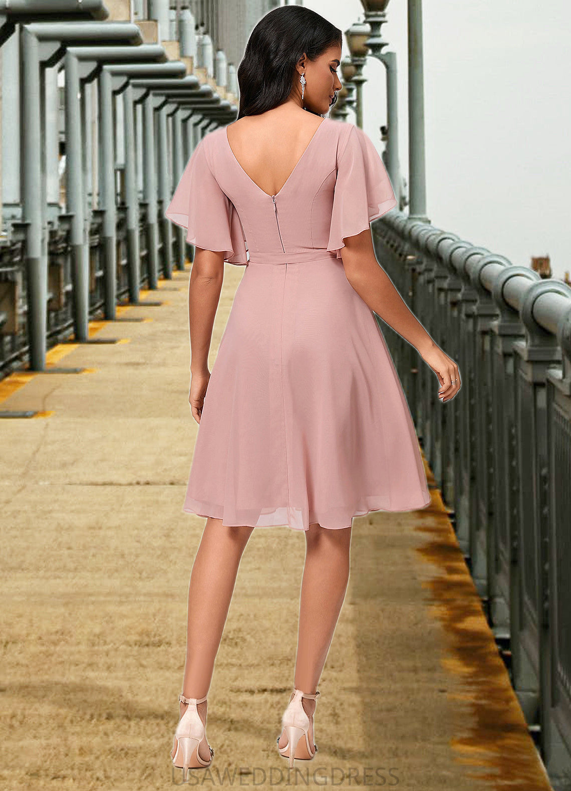 Laila A-line V-Neck Knee-Length Chiffon Cocktail Dress With Ruffle DSP0022335