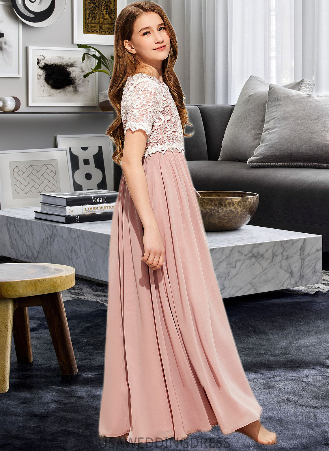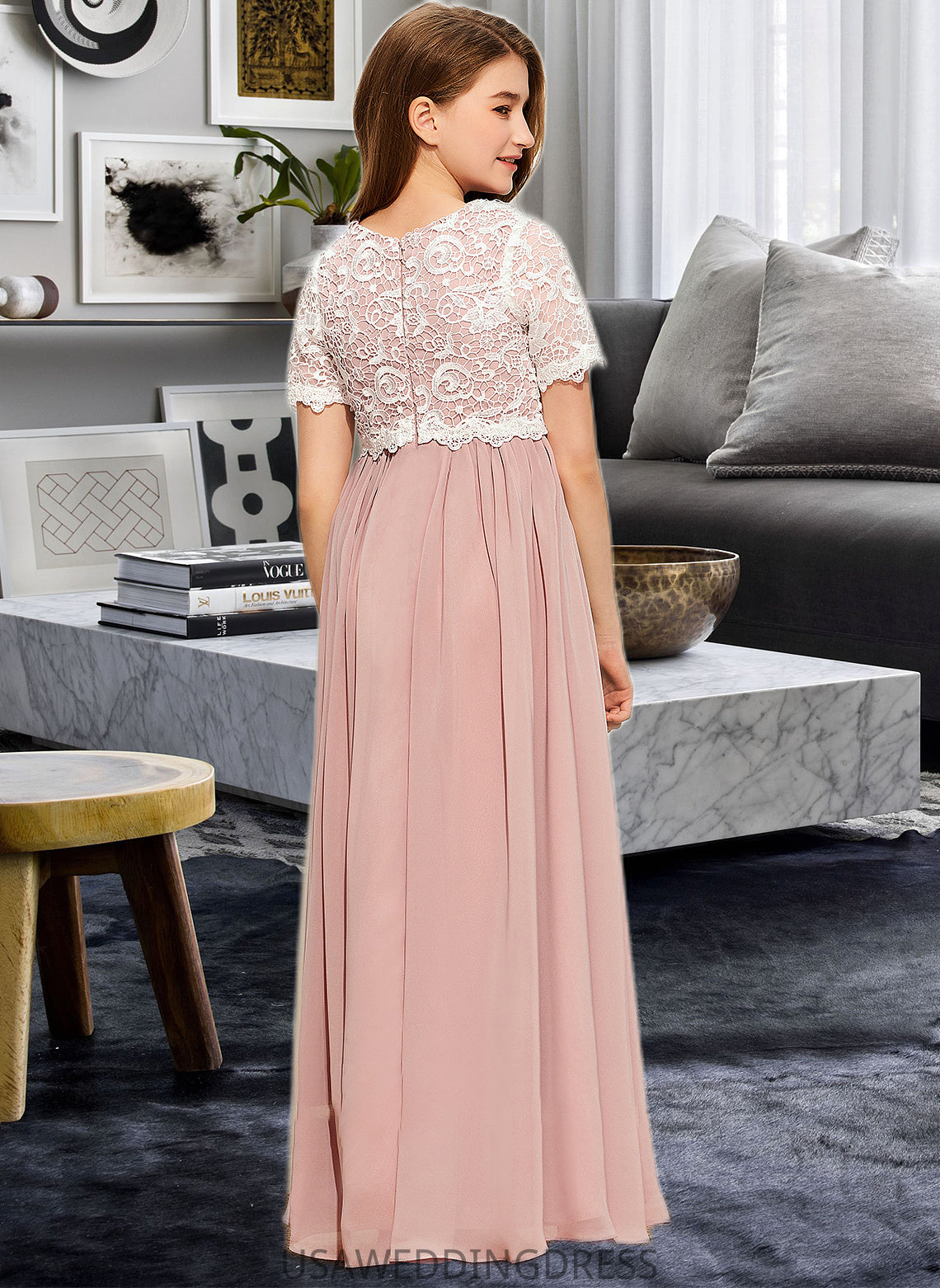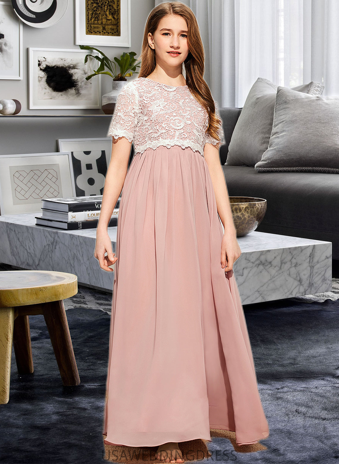 Larissa A-Line Scoop Neck Floor-Length Chiffon Lace Junior Bridesmaid Dress DSP0013623