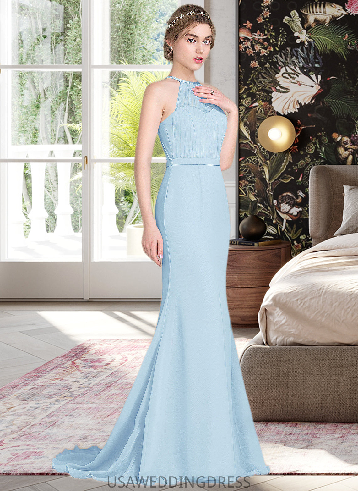 Lauren Trumpet/Mermaid Scoop Neck Sweep Train Chiffon Tulle Bridesmaid Dress With Ruffle DSP0013194