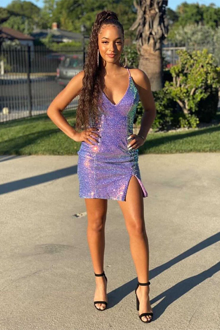 Lavender Fashion Glitter Party Dress Short Prom Homecoming Dresses Cierra Dress