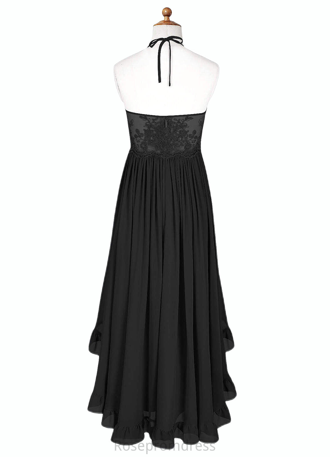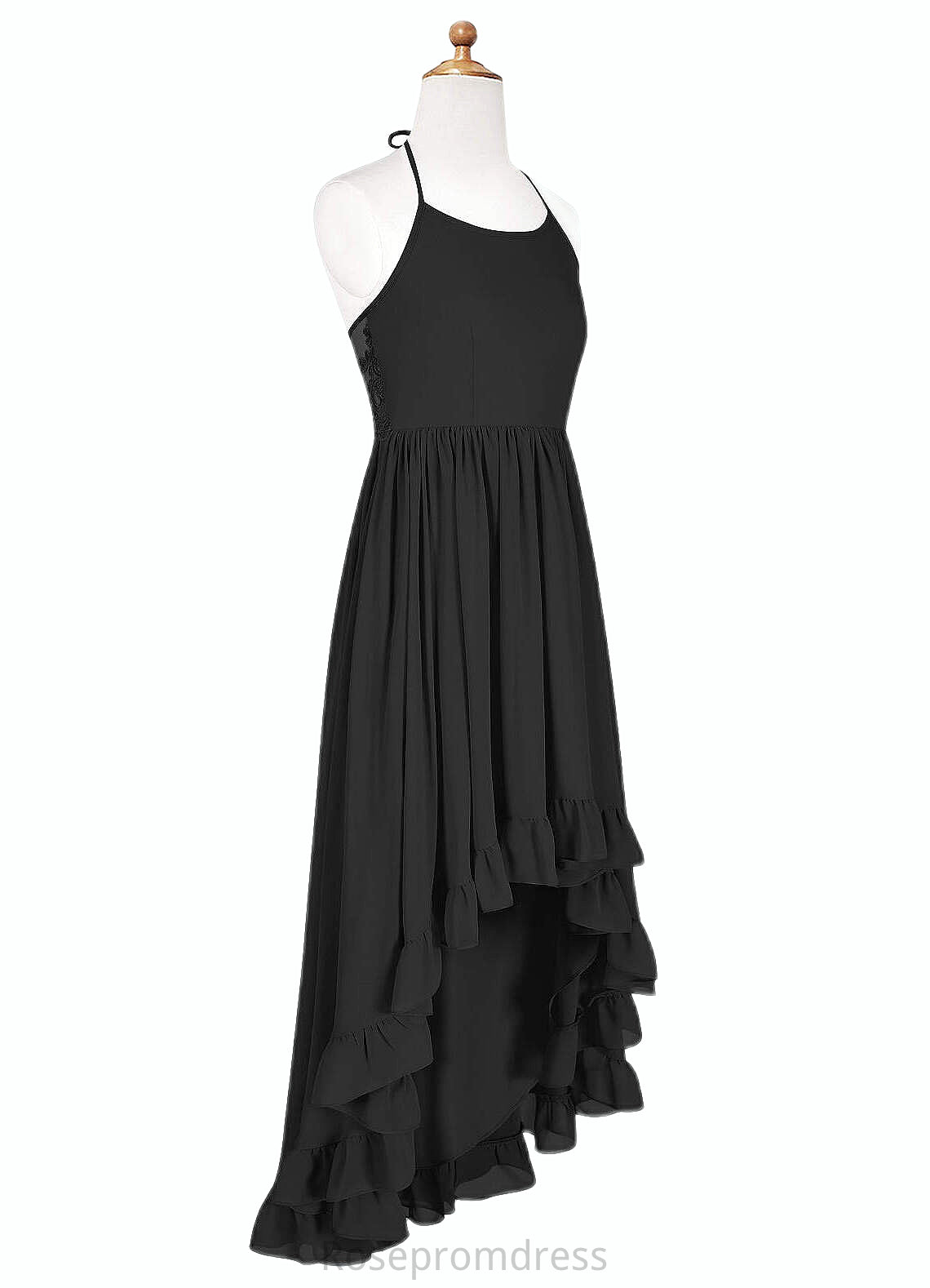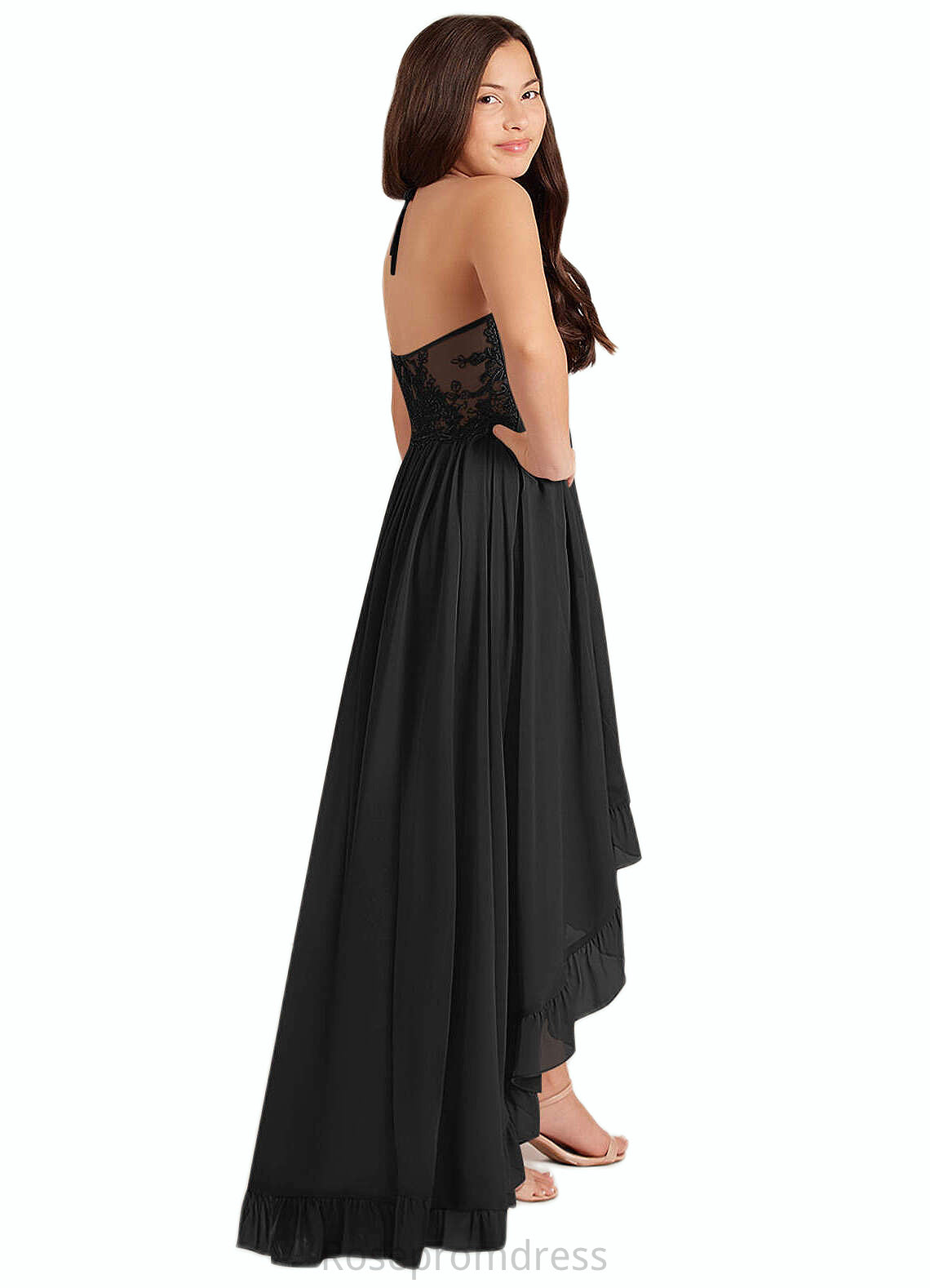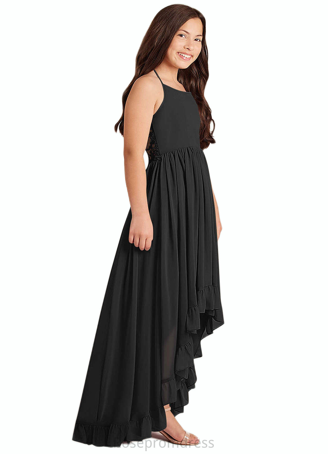 Laylah A-Line Lace Chiffon Asymmetrical Junior Bridesmaid Dress black SRSP0022855