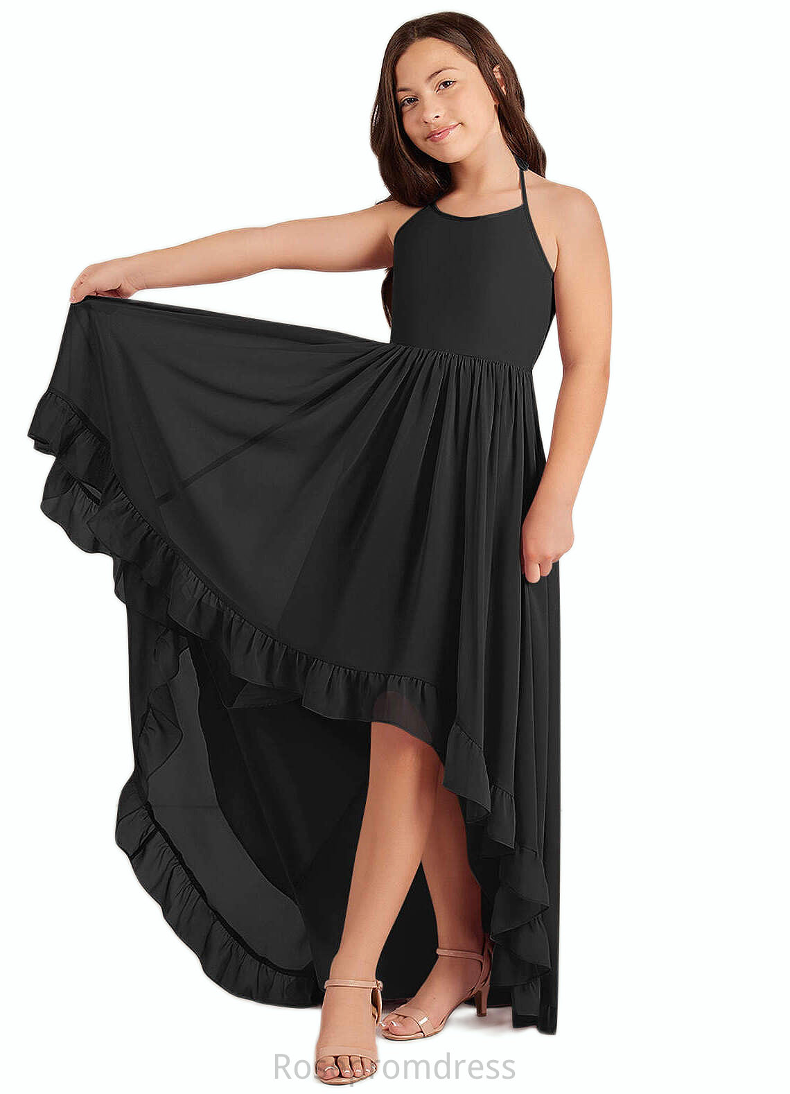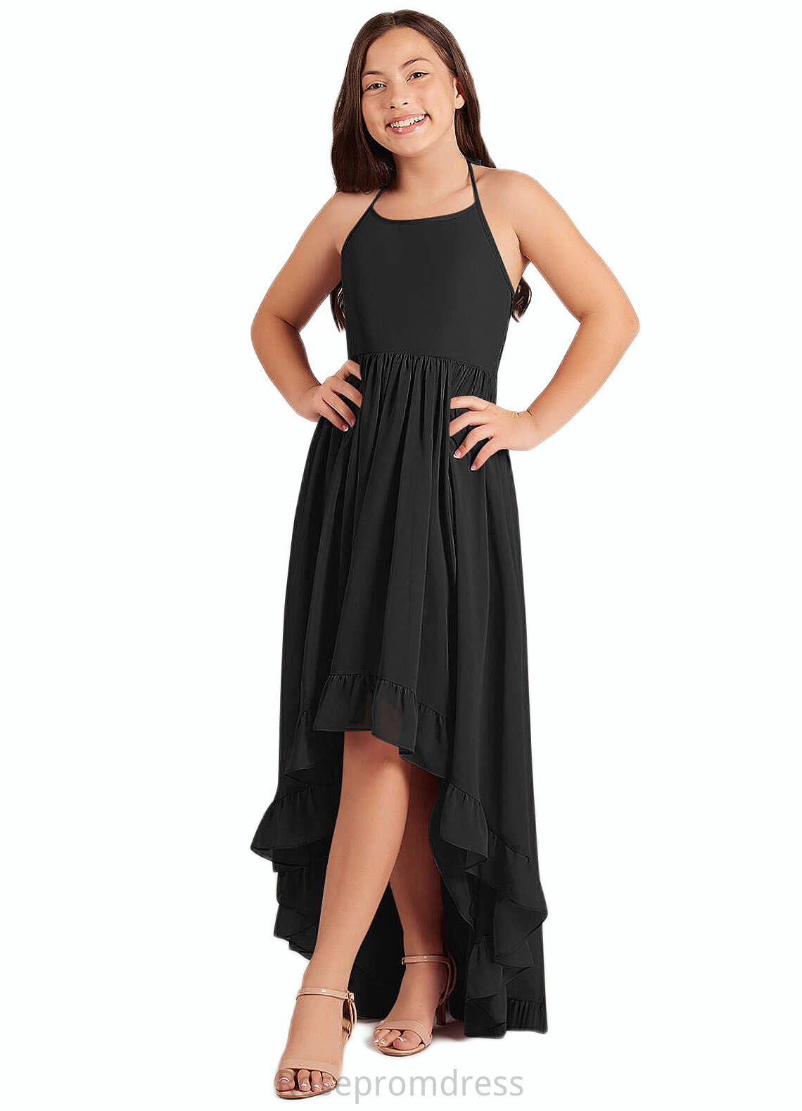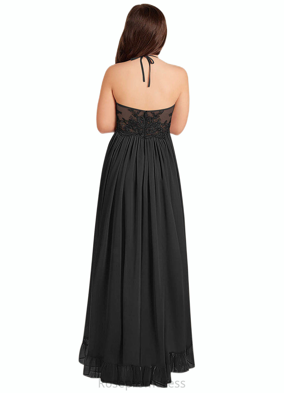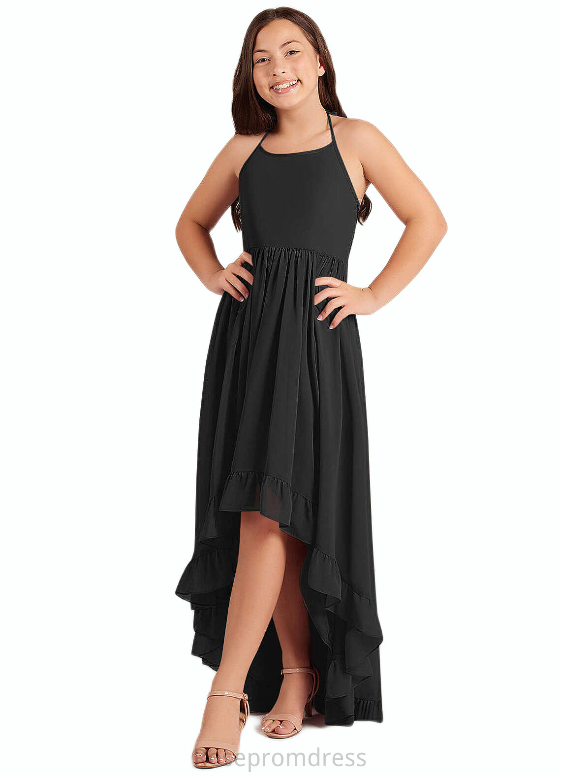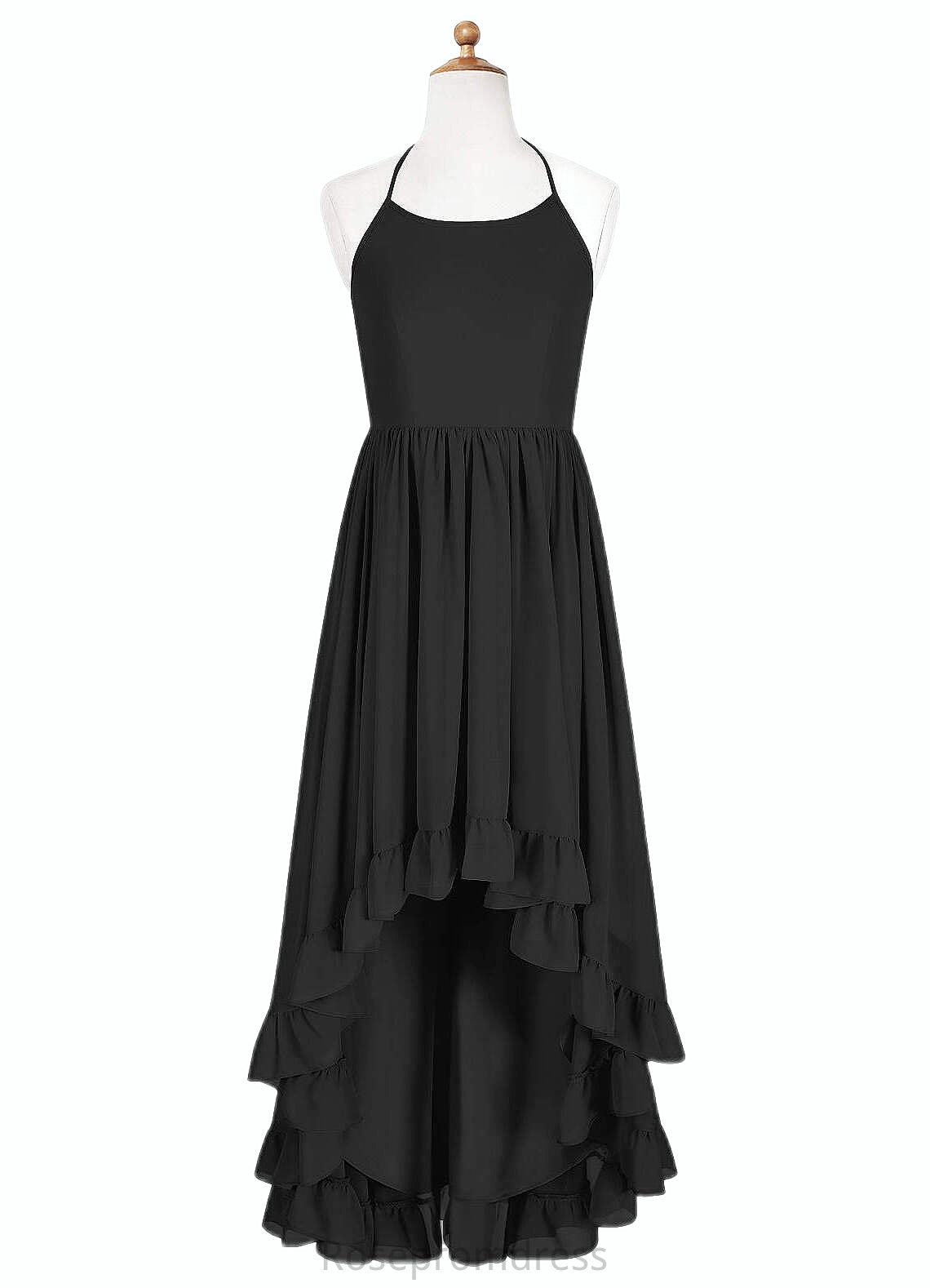 Laylah A-Line Lace Chiffon Asymmetrical Junior Bridesmaid Dress black SRSP0022855