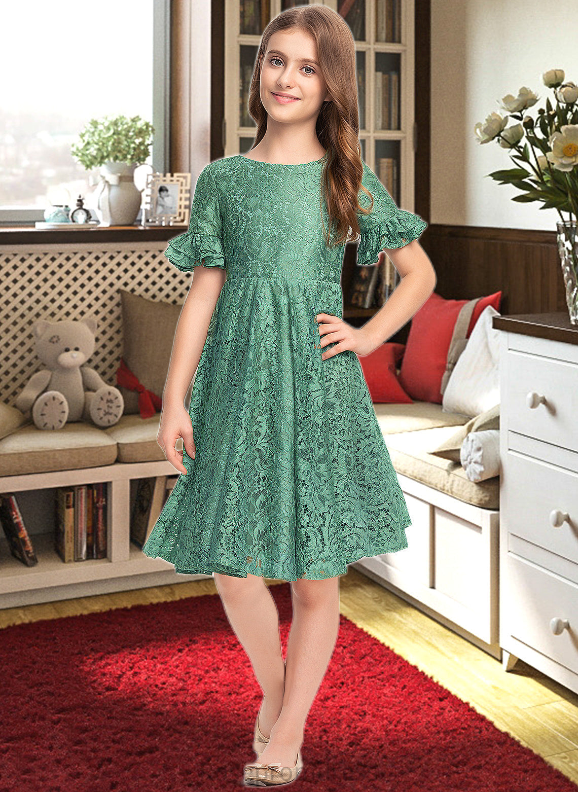 Laylah A-Line Scoop Neck Knee-Length Lace Junior Bridesmaid Dress With Cascading Ruffles SRSP0013513