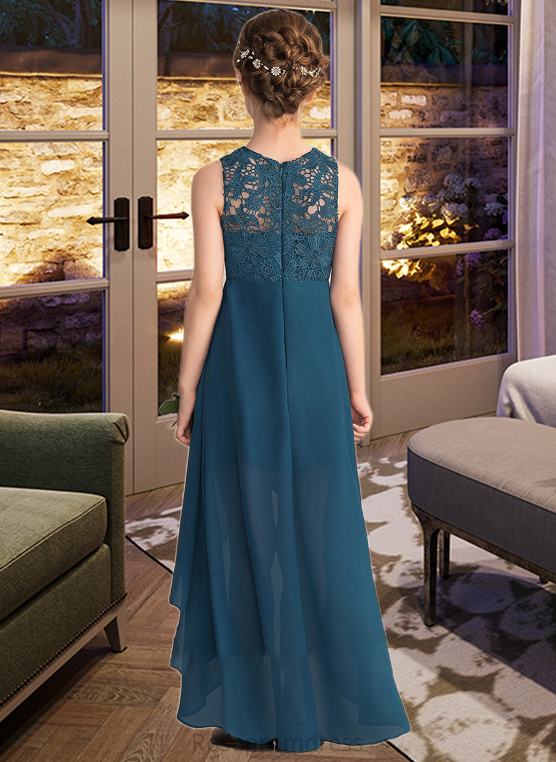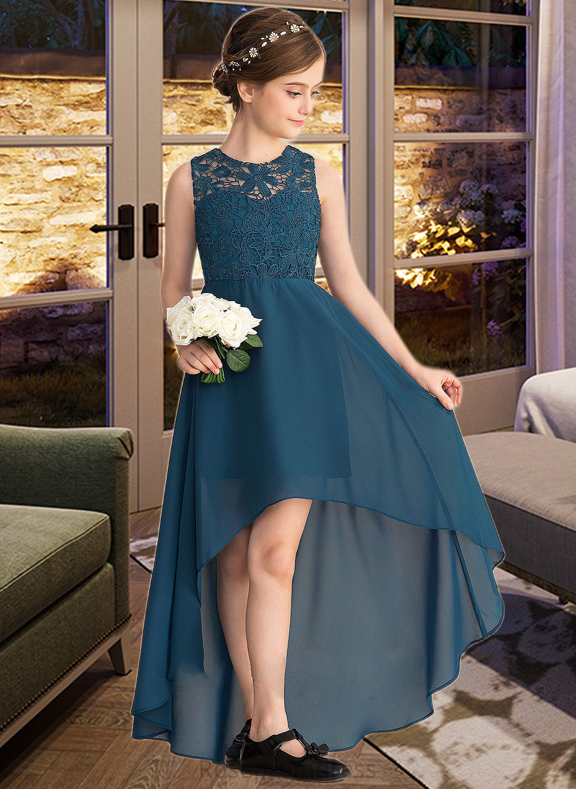 Leah A-Line Scoop Neck Asymmetrical Chiffon Lace Junior Bridesmaid Dress SRSP0013661