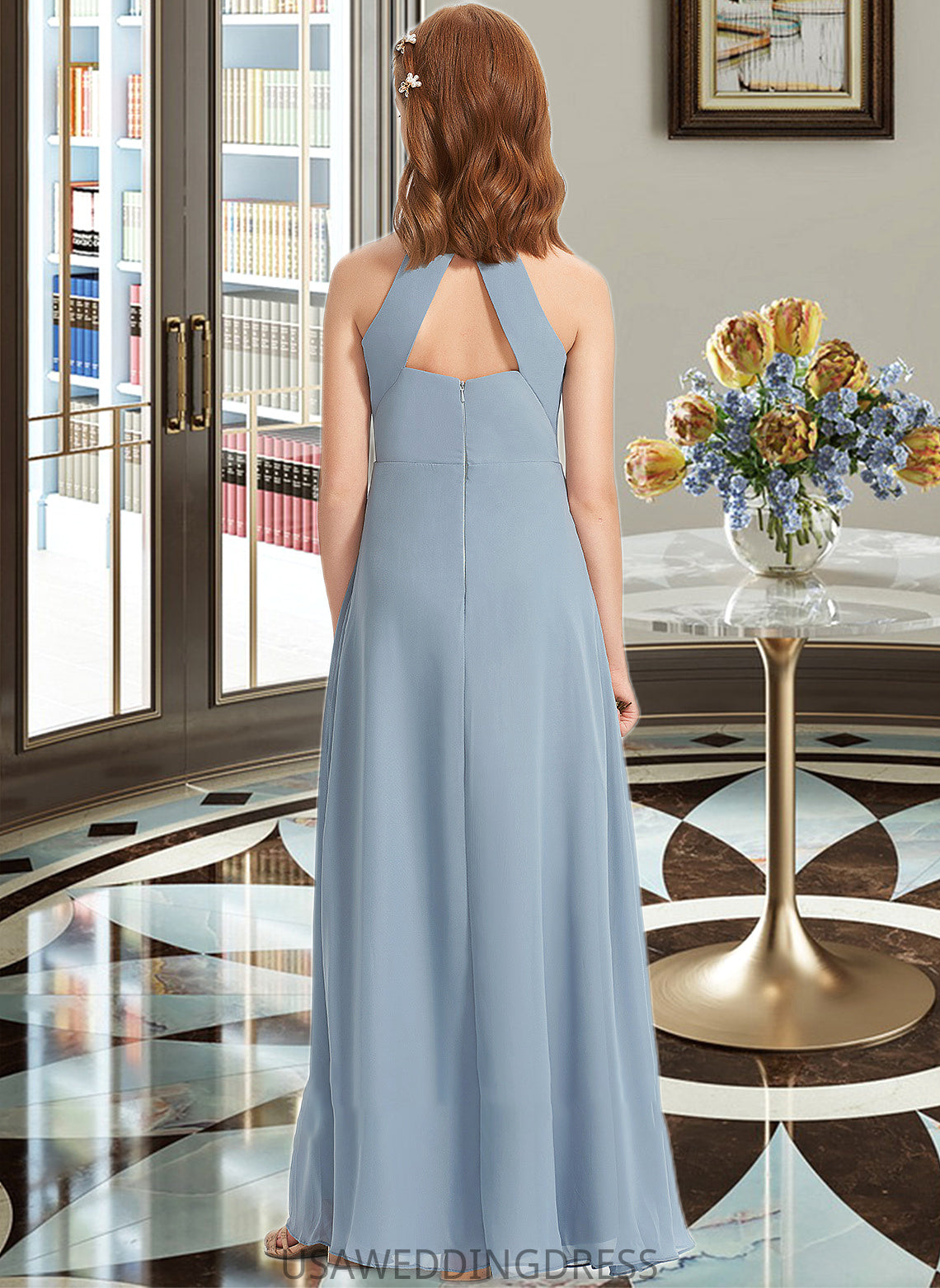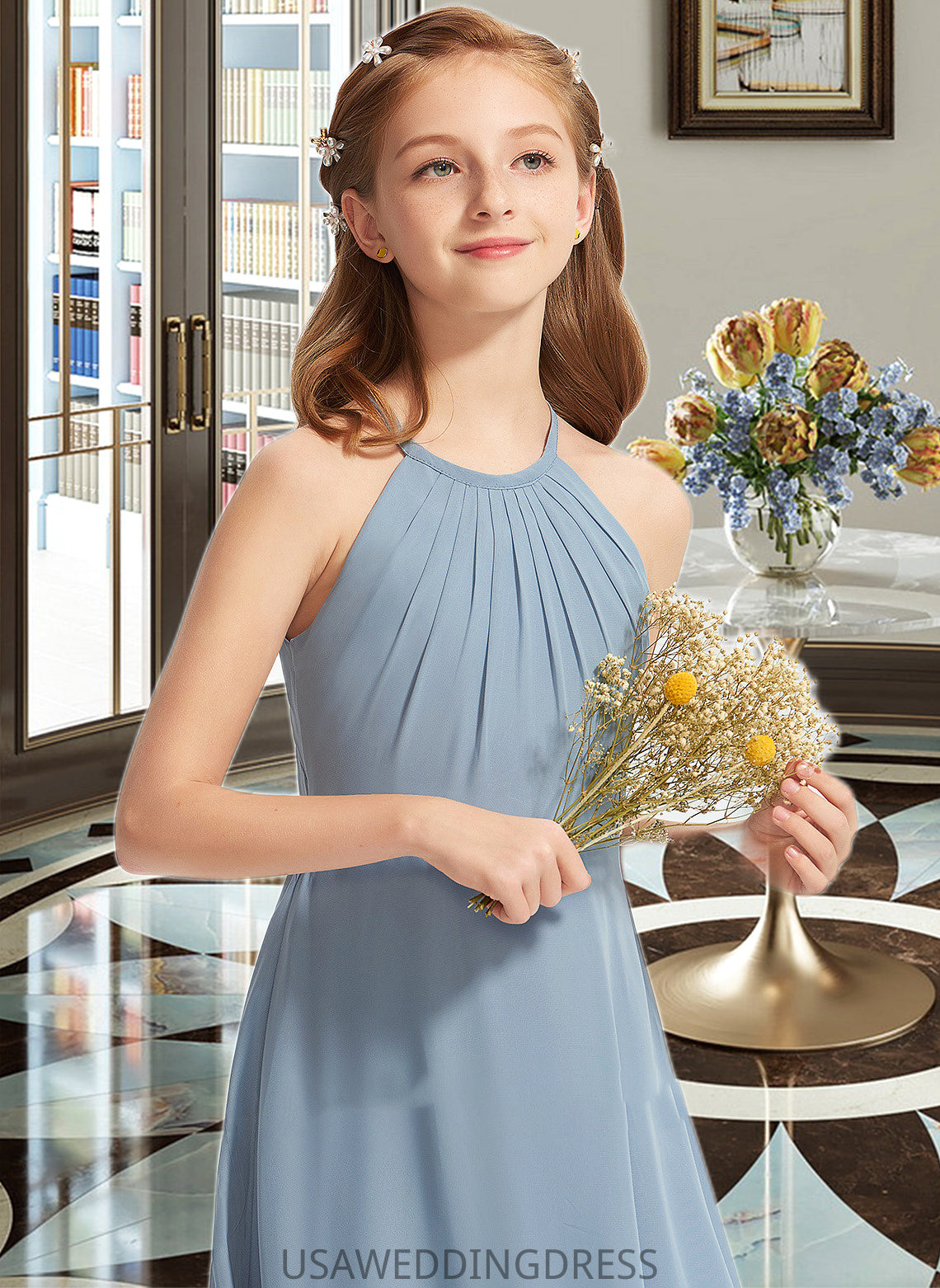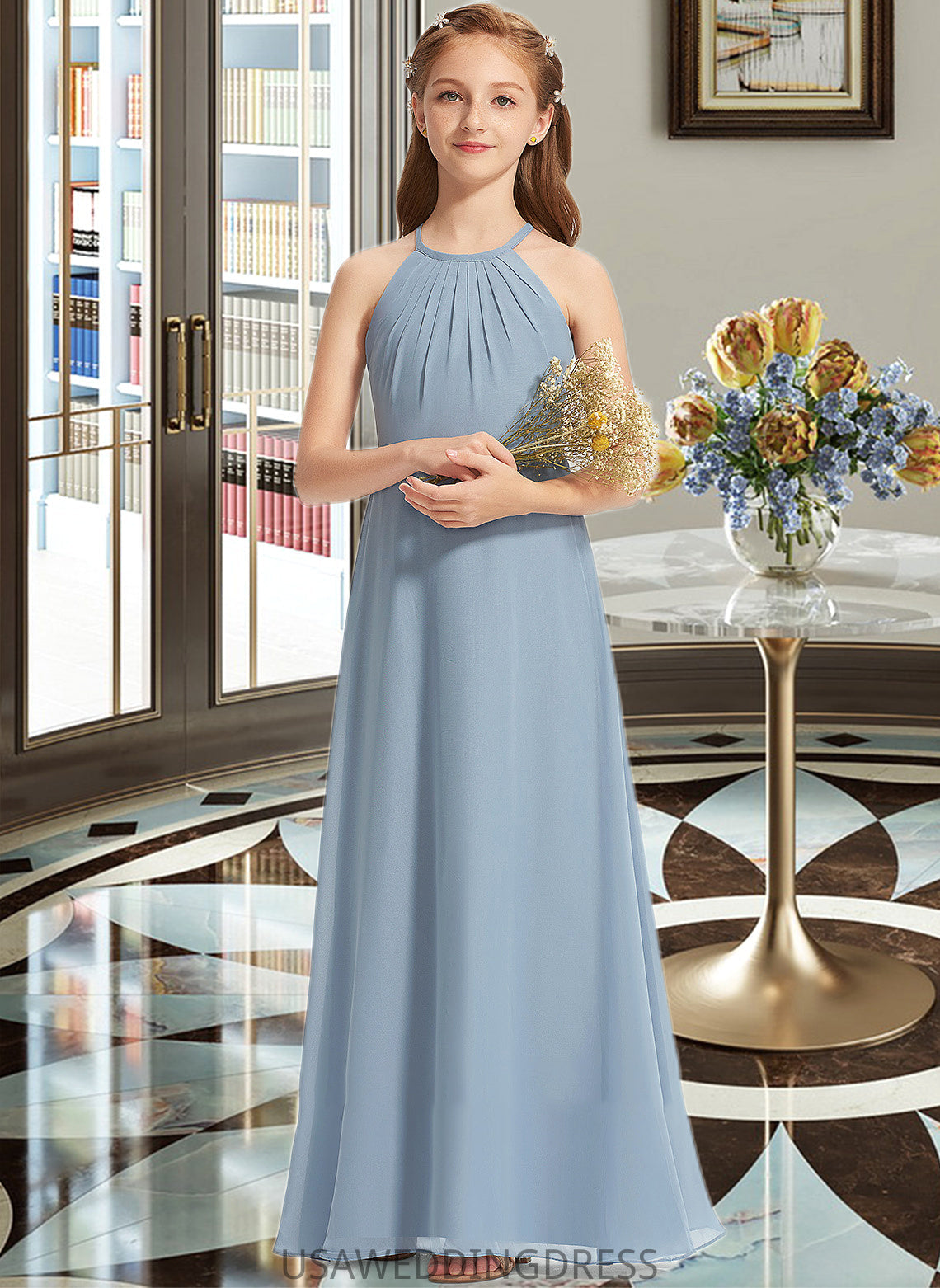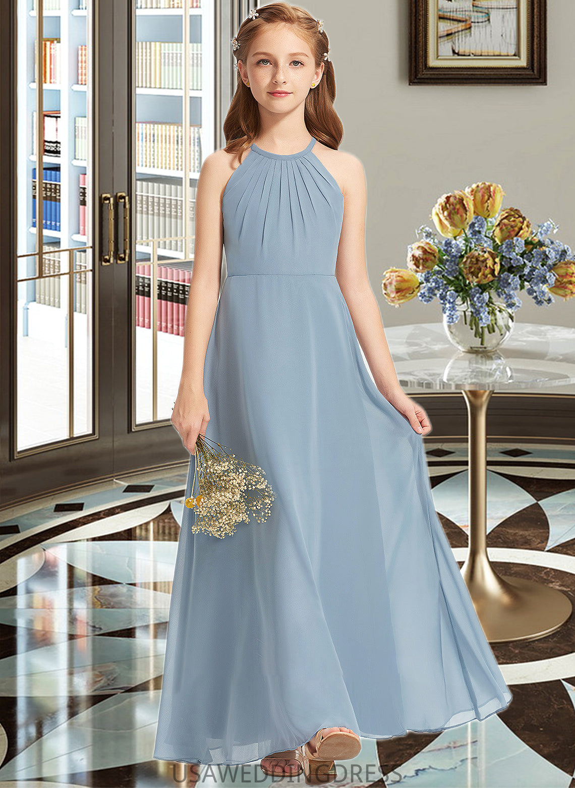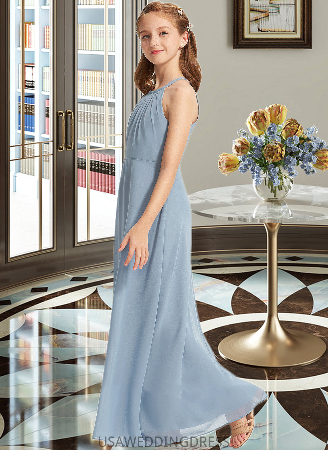 Leanna A-Line Scoop Neck Floor-Length Chiffon Junior Bridesmaid Dress With Ruffle DSP0013353