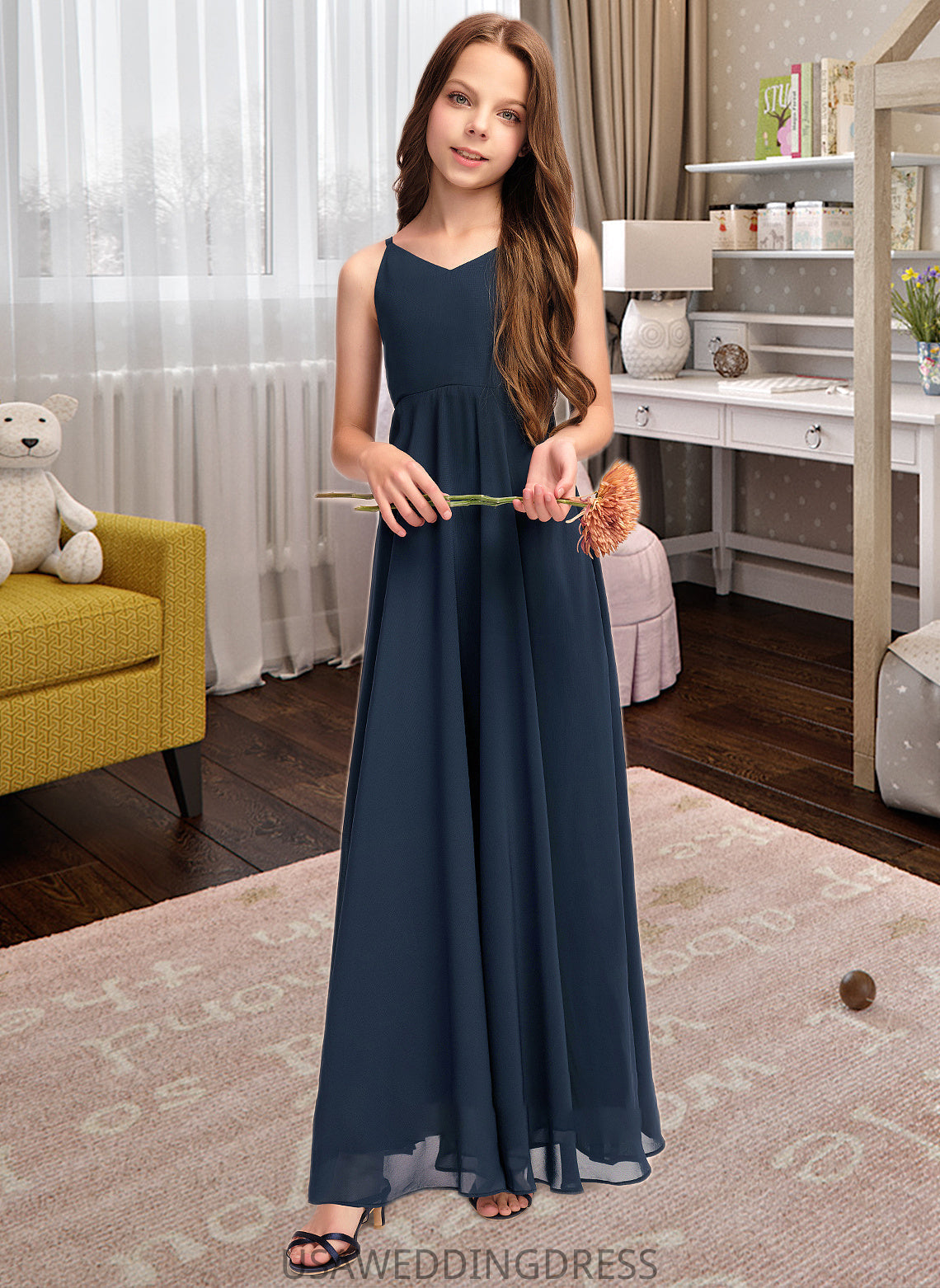 Leanna A-Line V-neck Floor-Length Chiffon Junior Bridesmaid Dress With Bow(s) DSP0013432