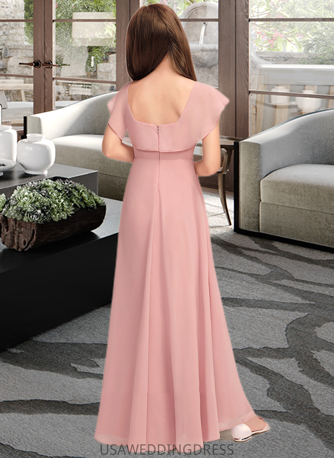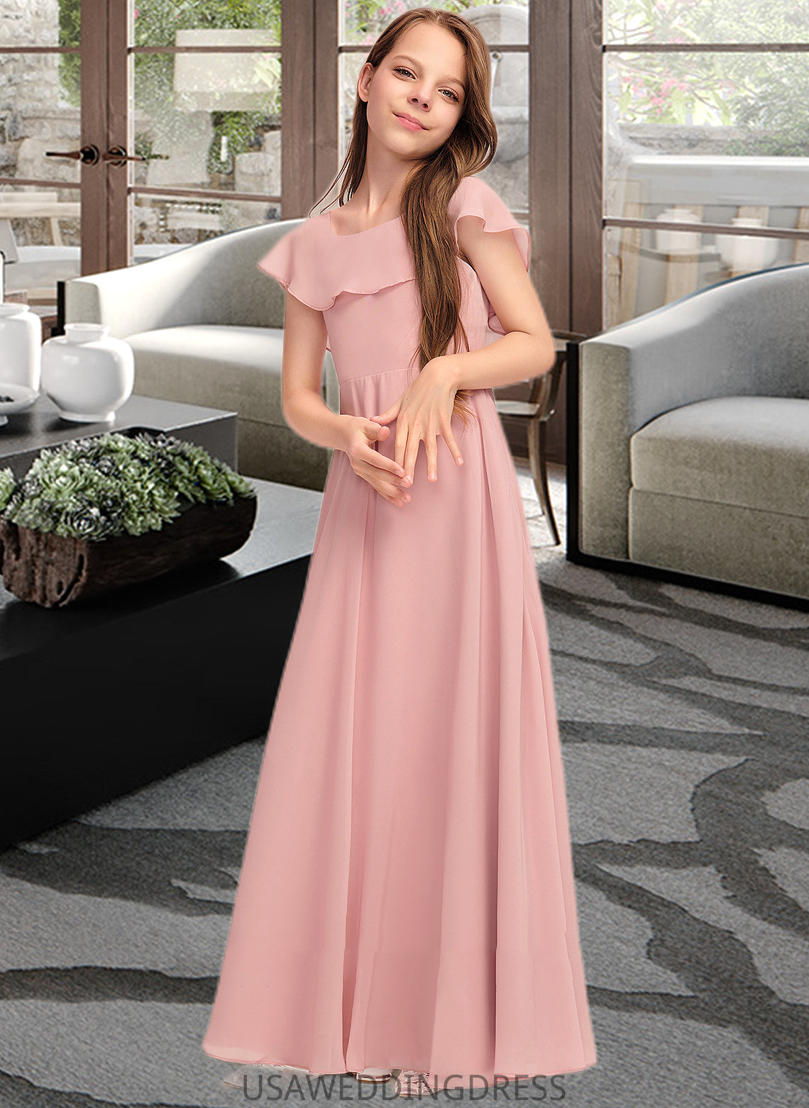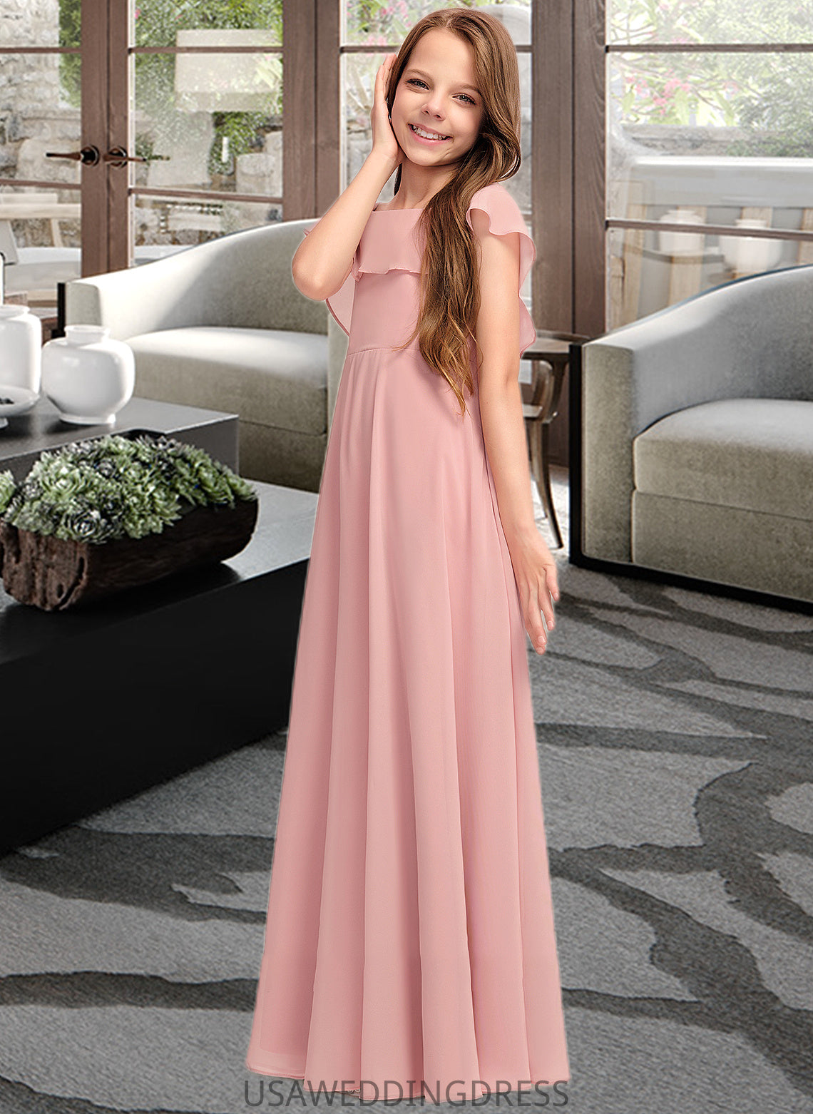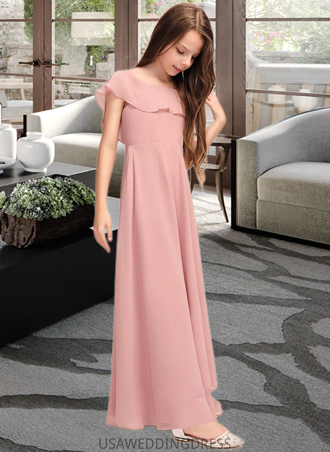 Leia A-Line Scoop Neck Floor-Length Chiffon Junior Bridesmaid Dress With Cascading Ruffles DSP0013382