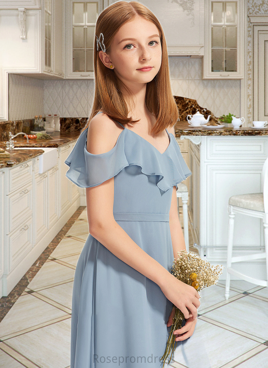 Leila A-Line Off-the-Shoulder Floor-Length Chiffon Junior Bridesmaid Dress With Ruffles SRSP0013334