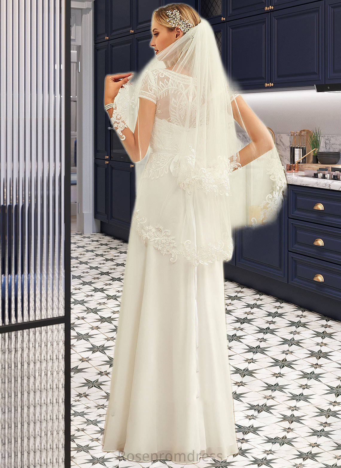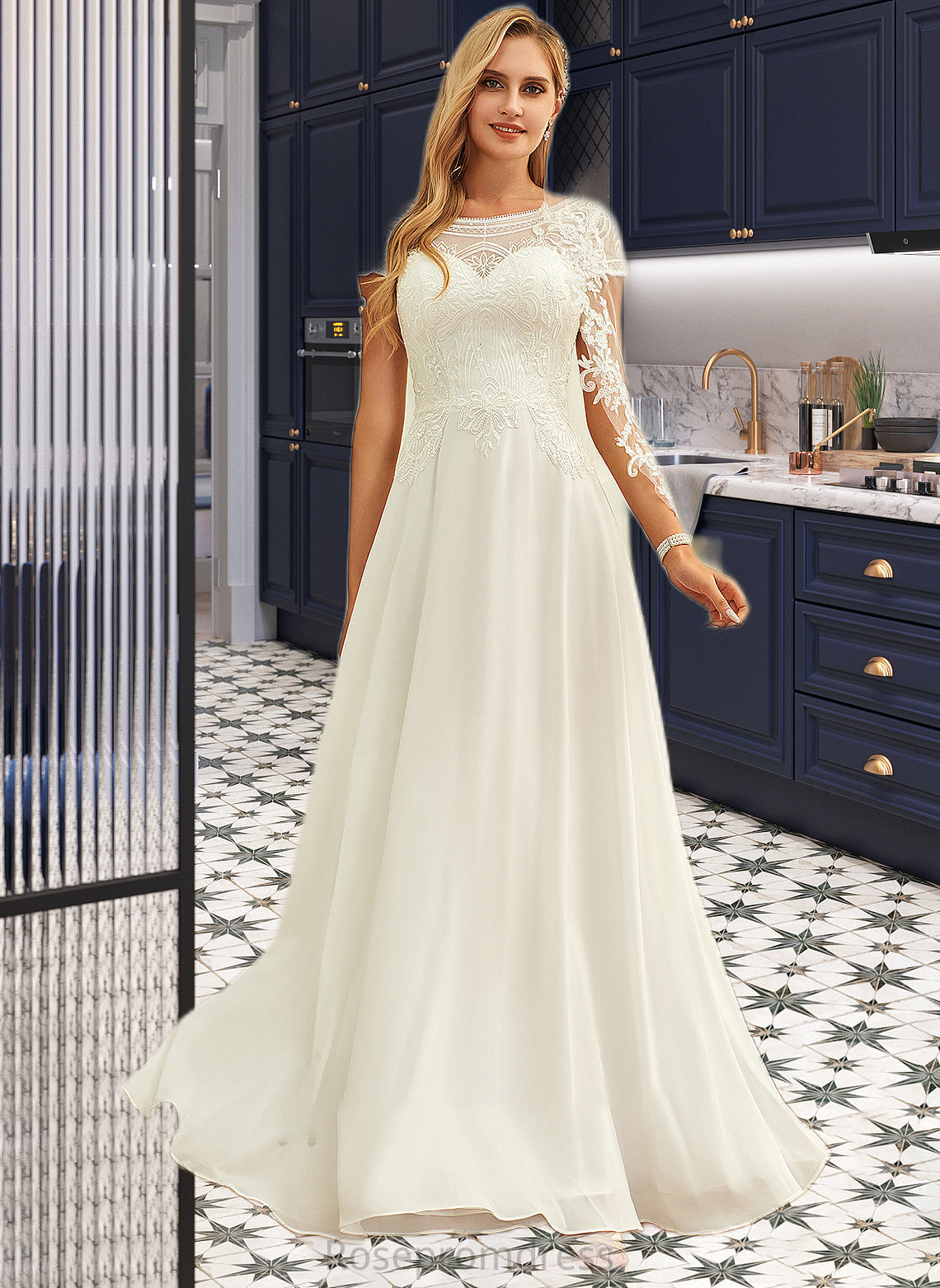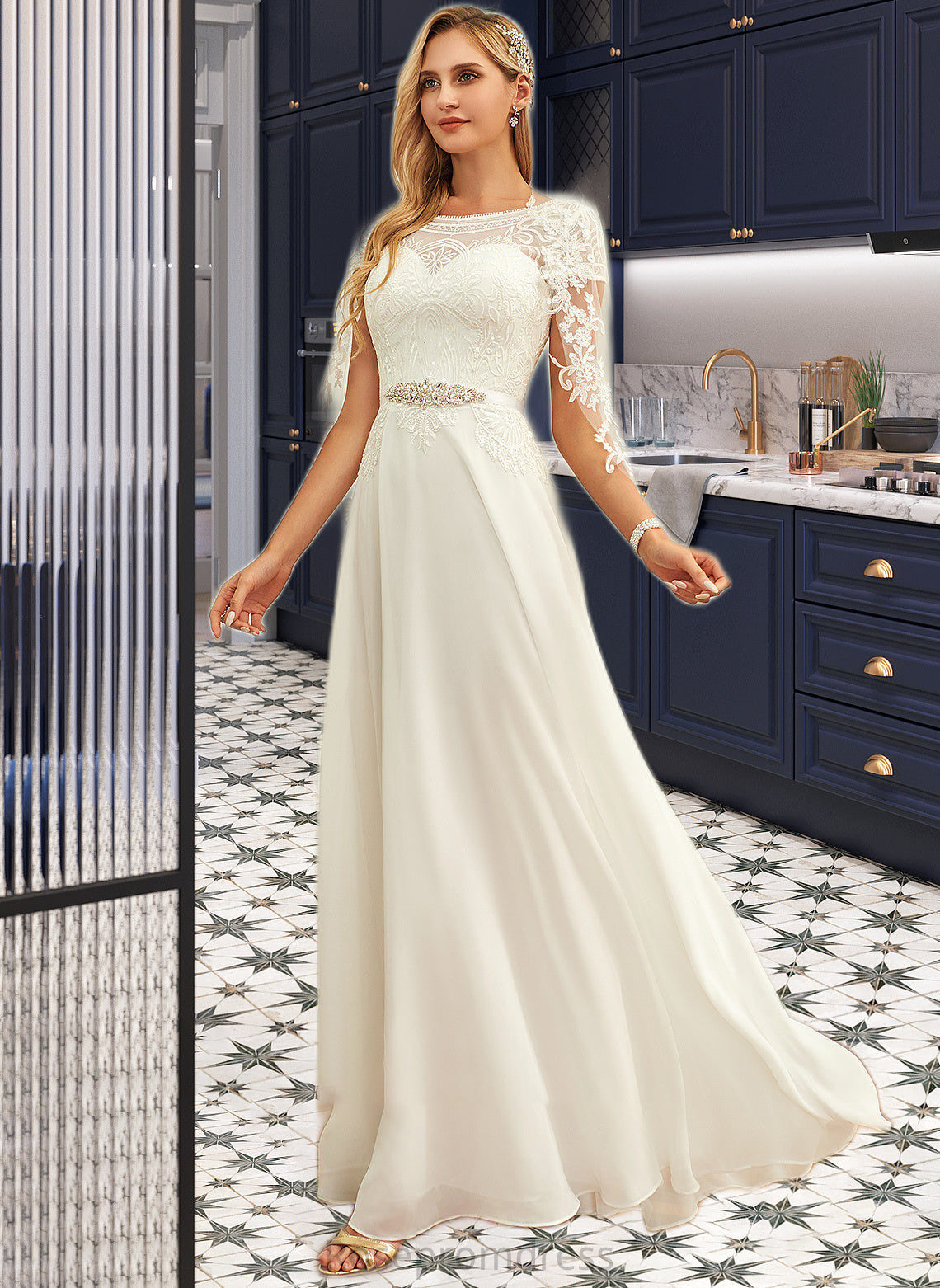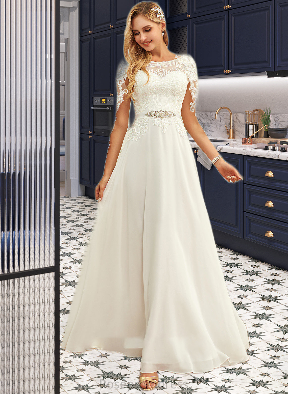 Leila A-Line Scoop Neck Floor-Length Chiffon Lace Wedding Dress With Sequins SRSP0013775