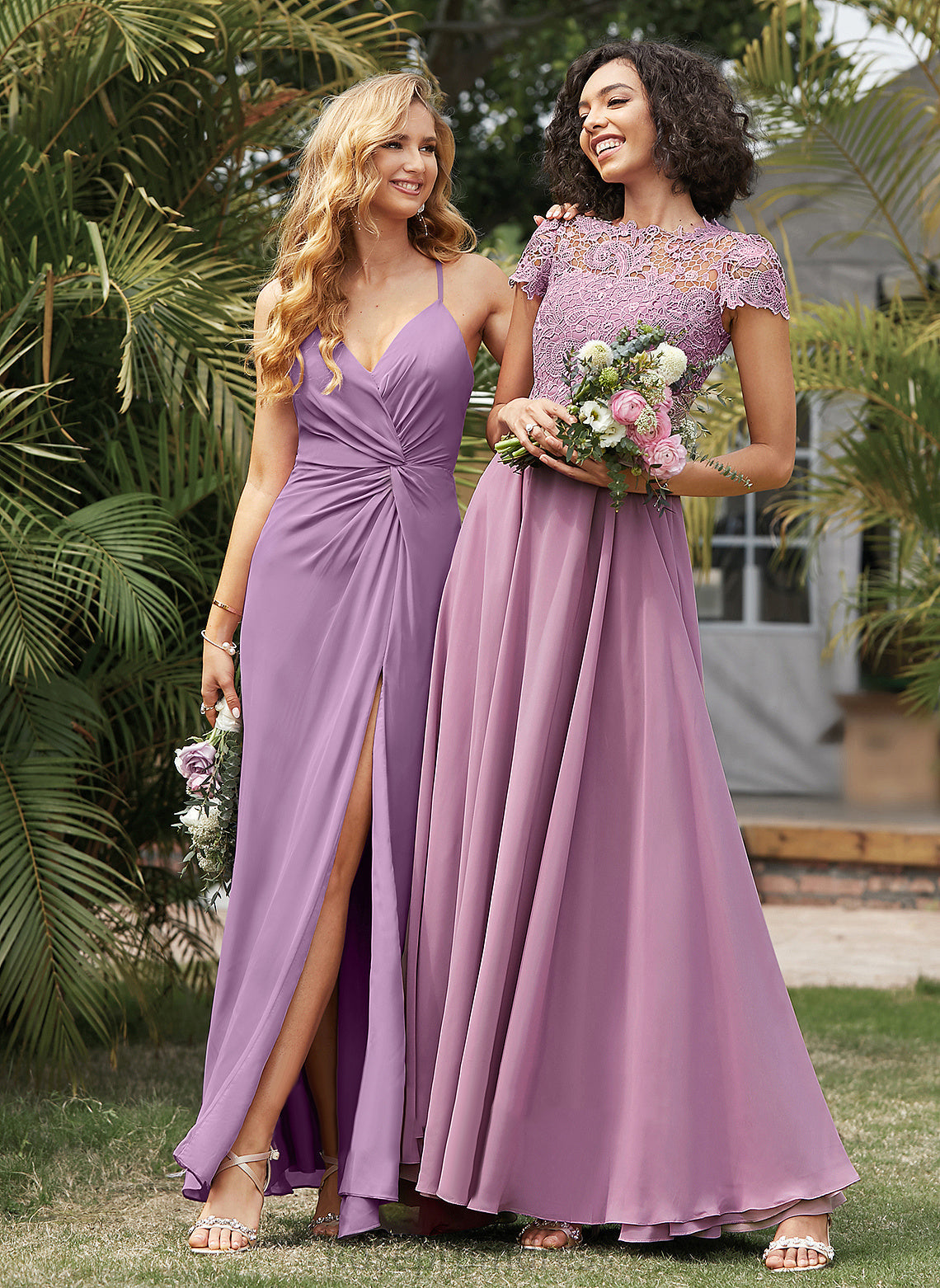 Length Floor-Length Fabric Straps&Sleeves Scoop Lace Silhouette A-Line Neckline Princess Bridesmaid Dresses