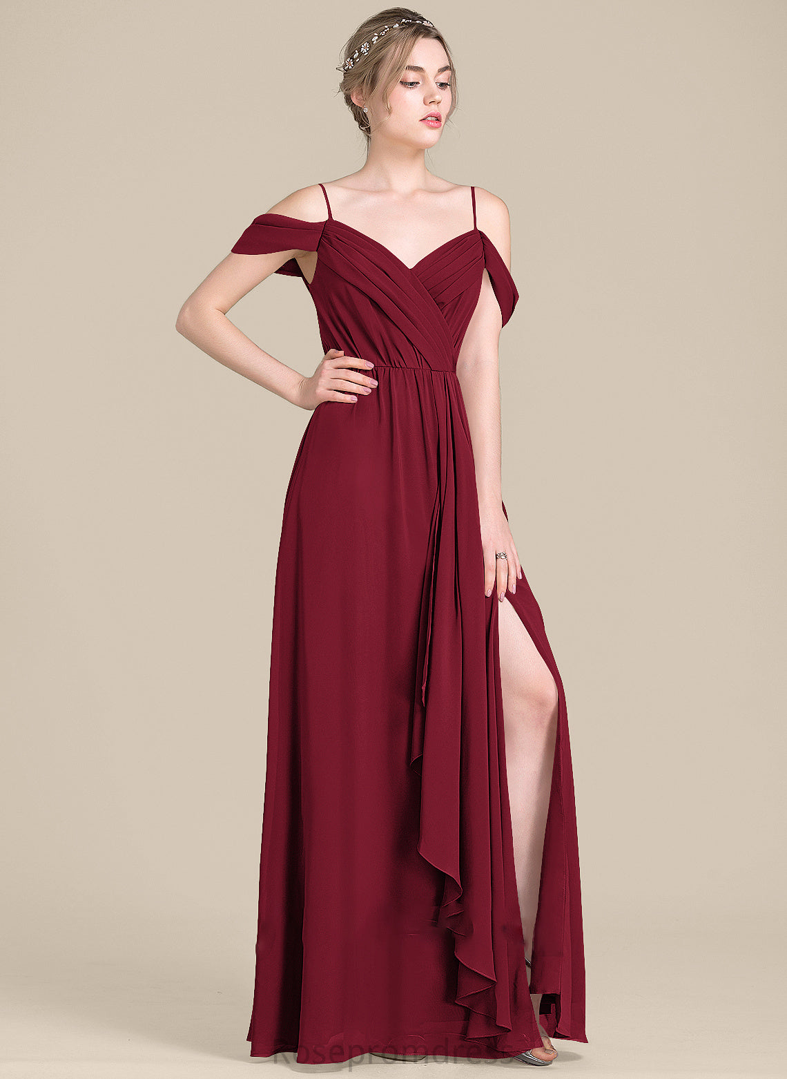 Length Floor-Length Neckline V-neck Fabric Bow(s) Embellishment A-Line CascadingRuffles Silhouette SplitFront Tess Bridesmaid Dresses