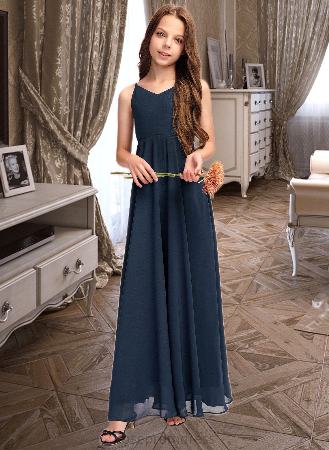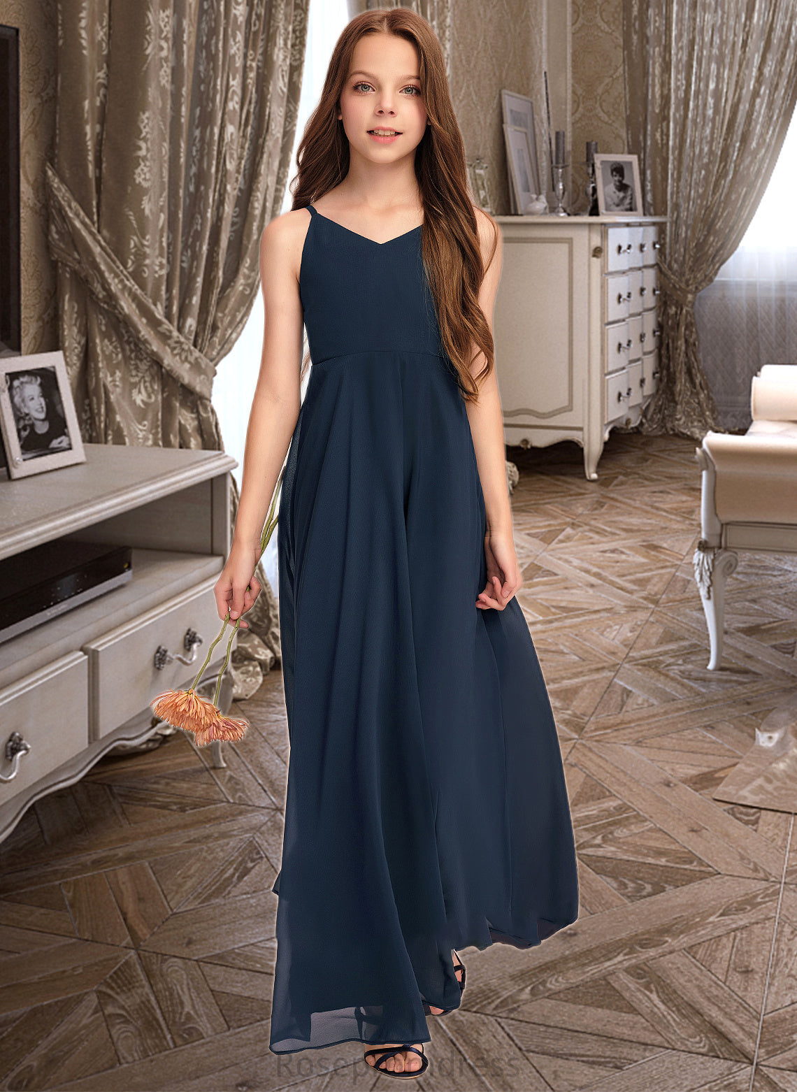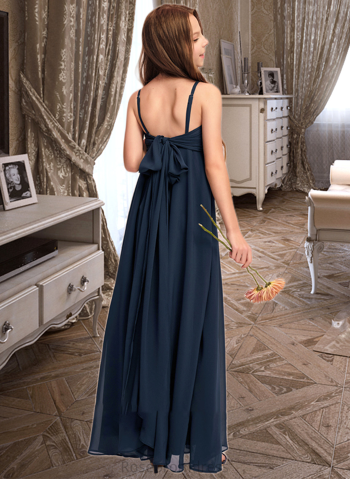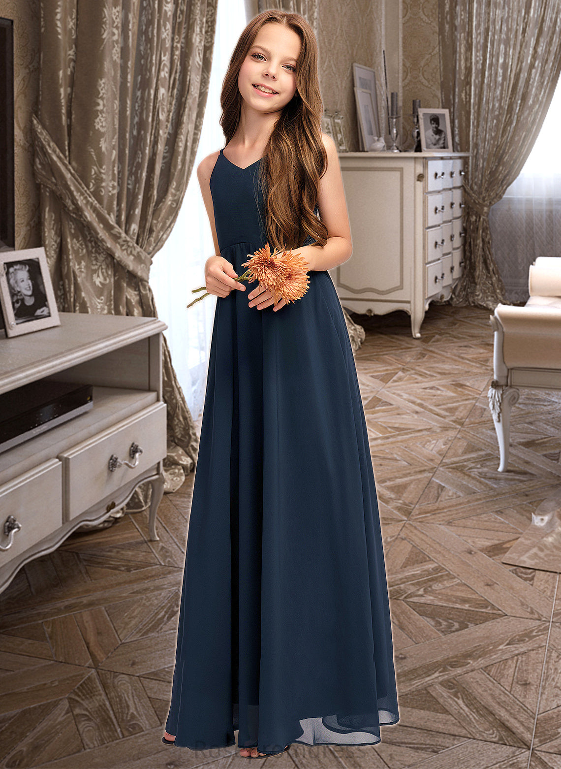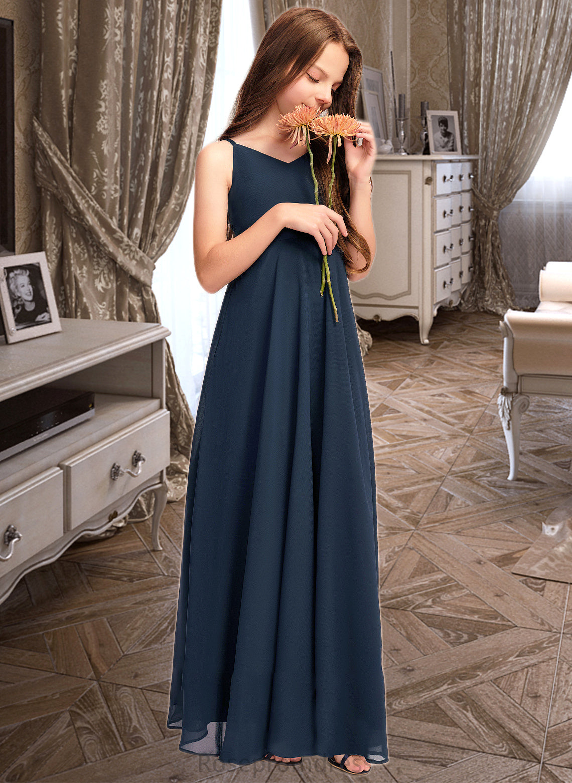 Lesley A-Line V-neck Floor-Length Chiffon Junior Bridesmaid Dress With Bow(s) SRSP0013432