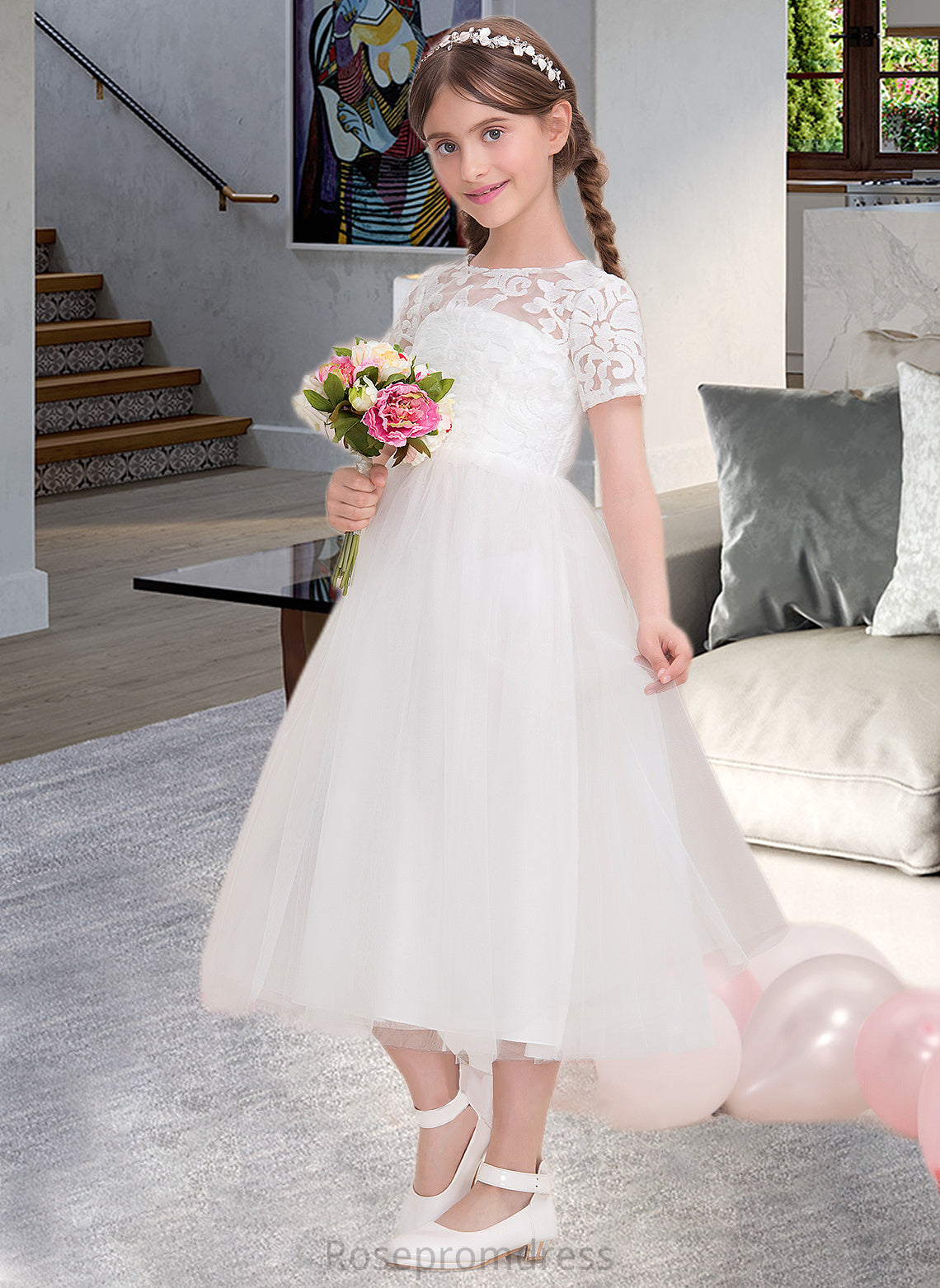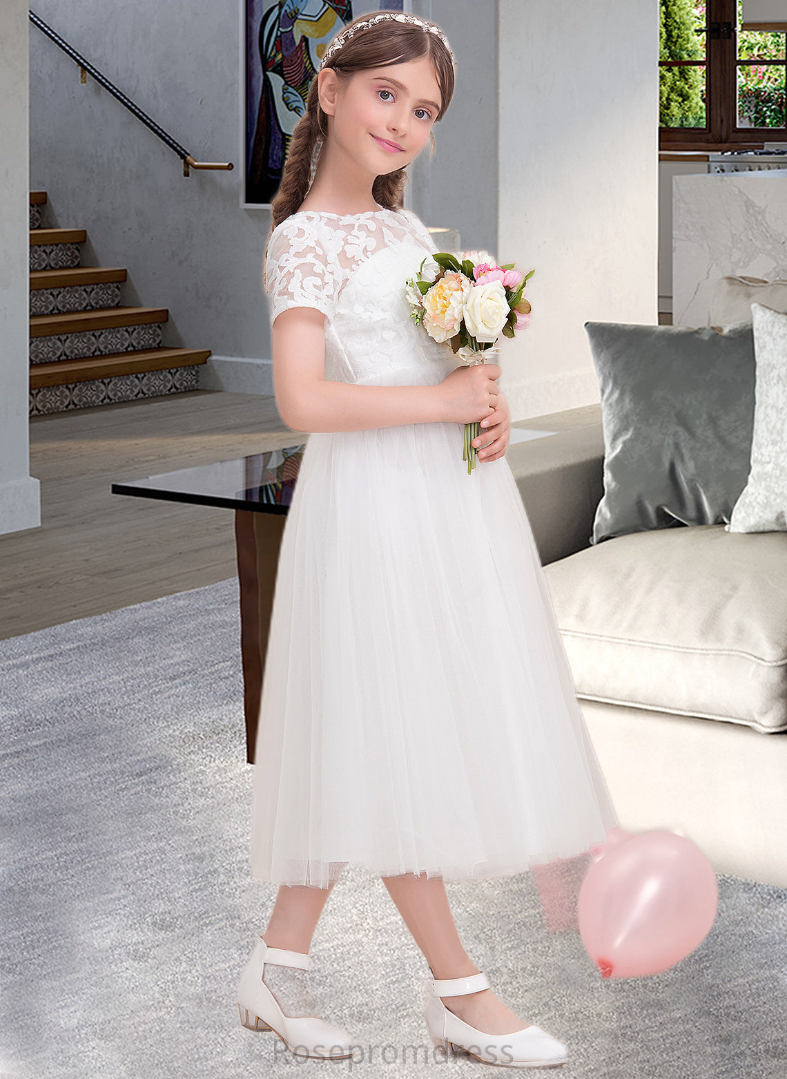 Lesly A-Line Scoop Neck Tea-Length Tulle Junior Bridesmaid Dress SRSP0013535