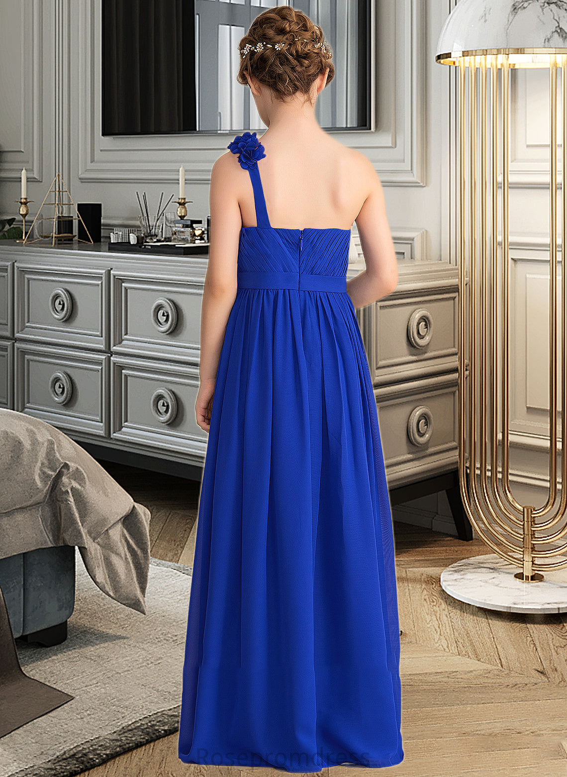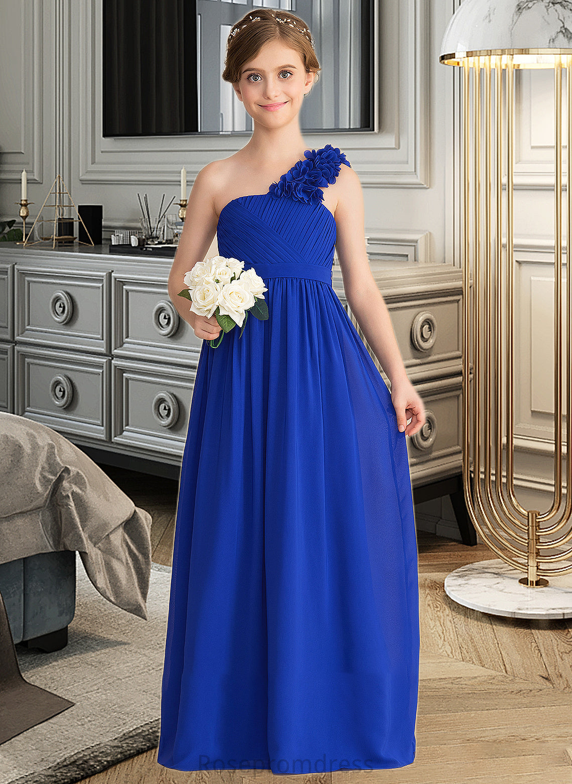 Lia A-Line One-Shoulder Floor-Length Chiffon Junior Bridesmaid Dress With Ruffle Flower(s) SRSP0013393