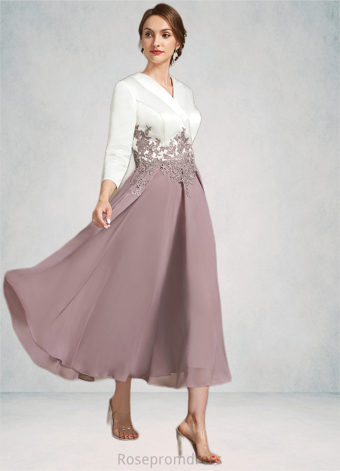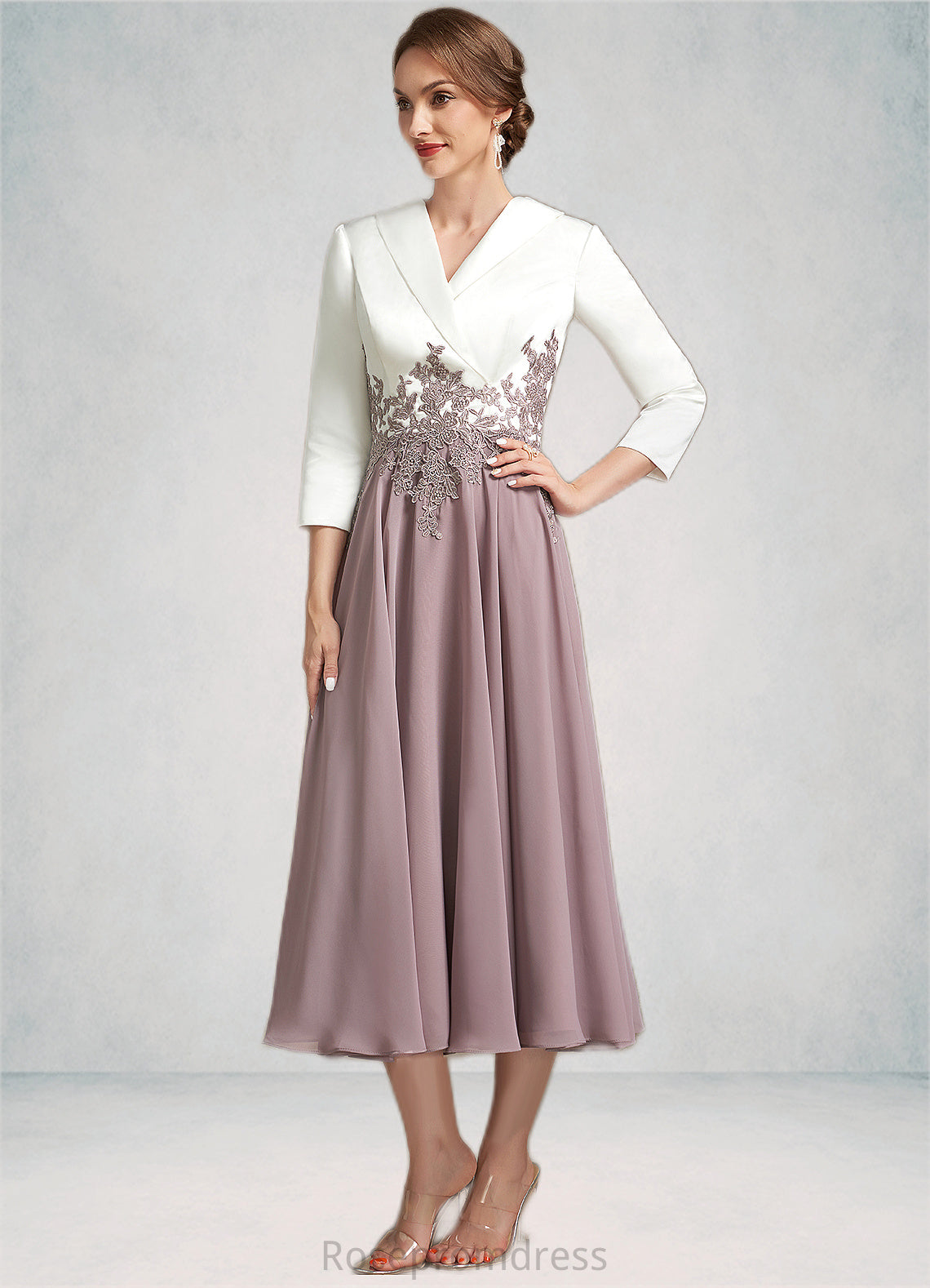 Lia A-Line V-neck Tea-Length Chiffon Lace Mother of the Bride Dress SRSP0014575