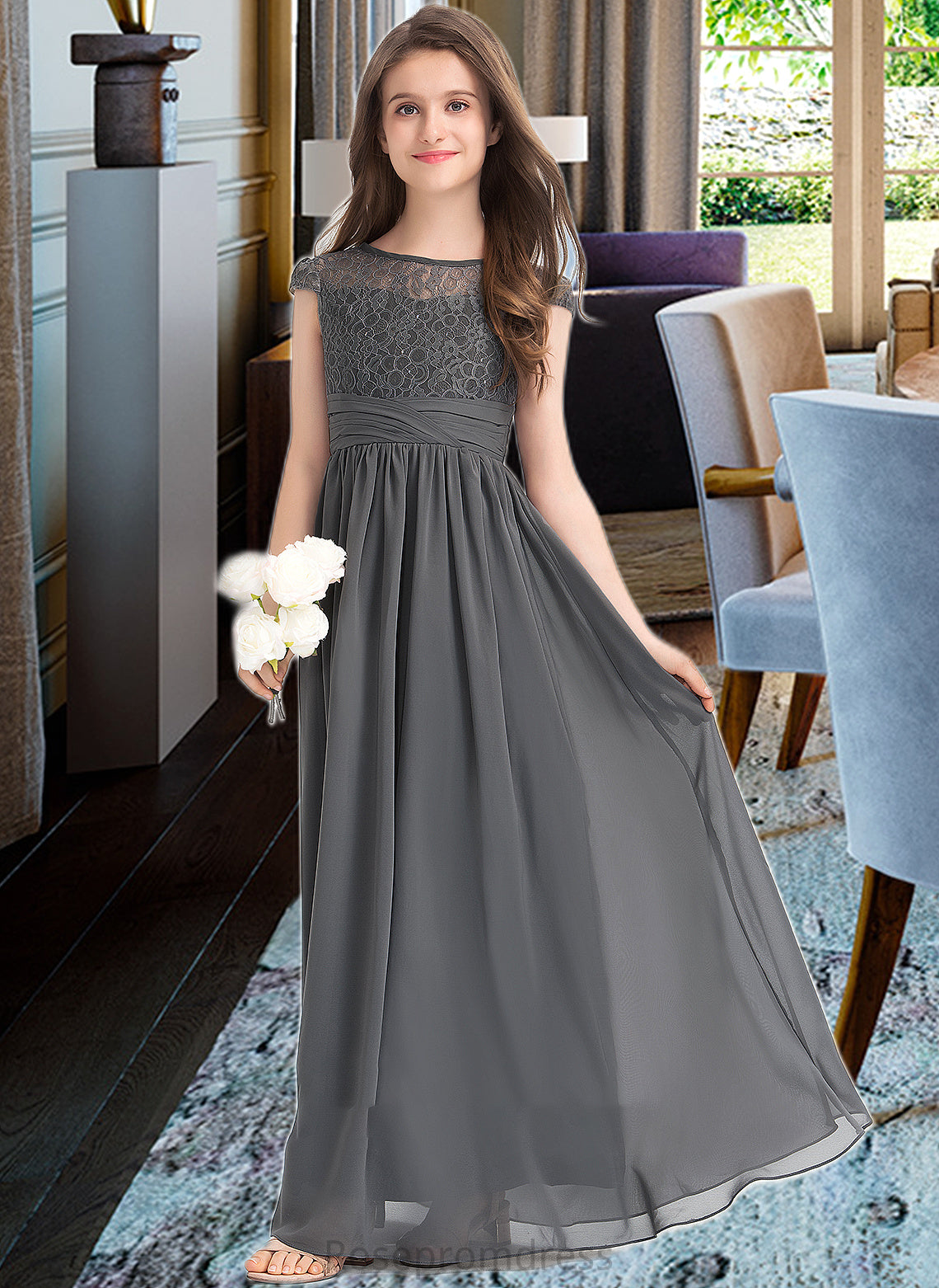 Libby A-Line Scoop Neck Floor-Length Chiffon Lace Junior Bridesmaid Dress With Ruffle SRSP0013331