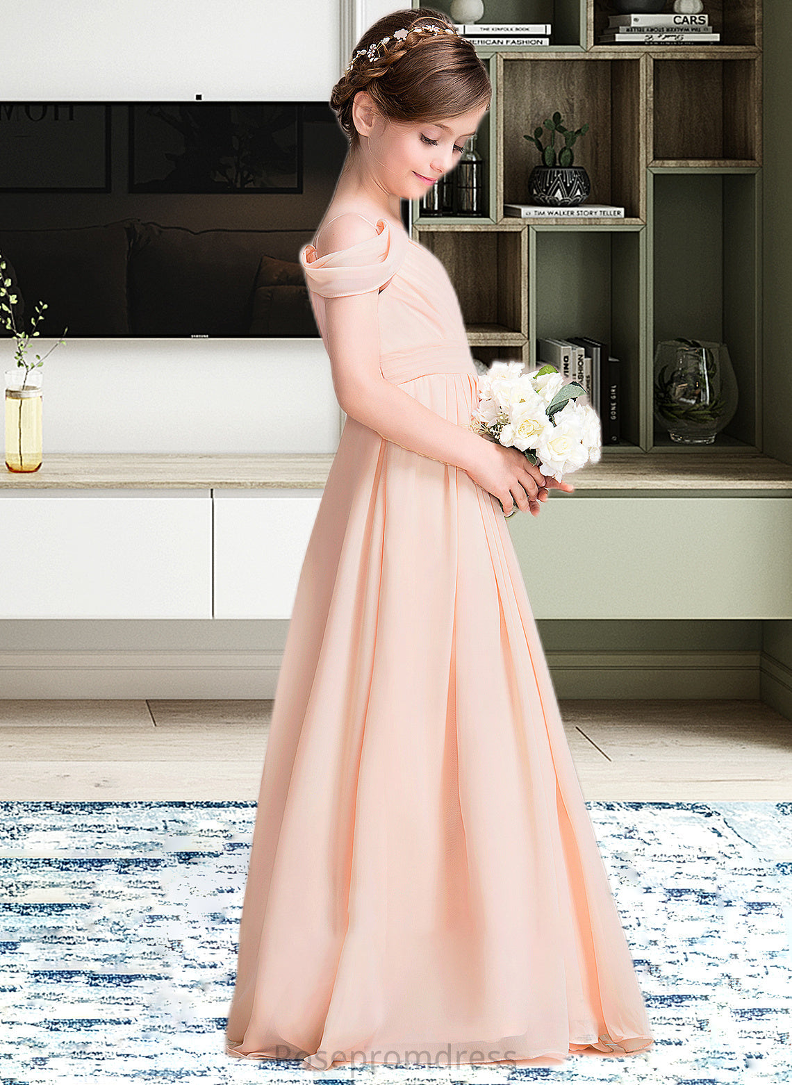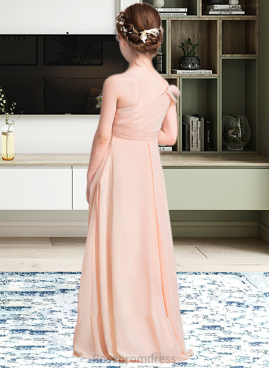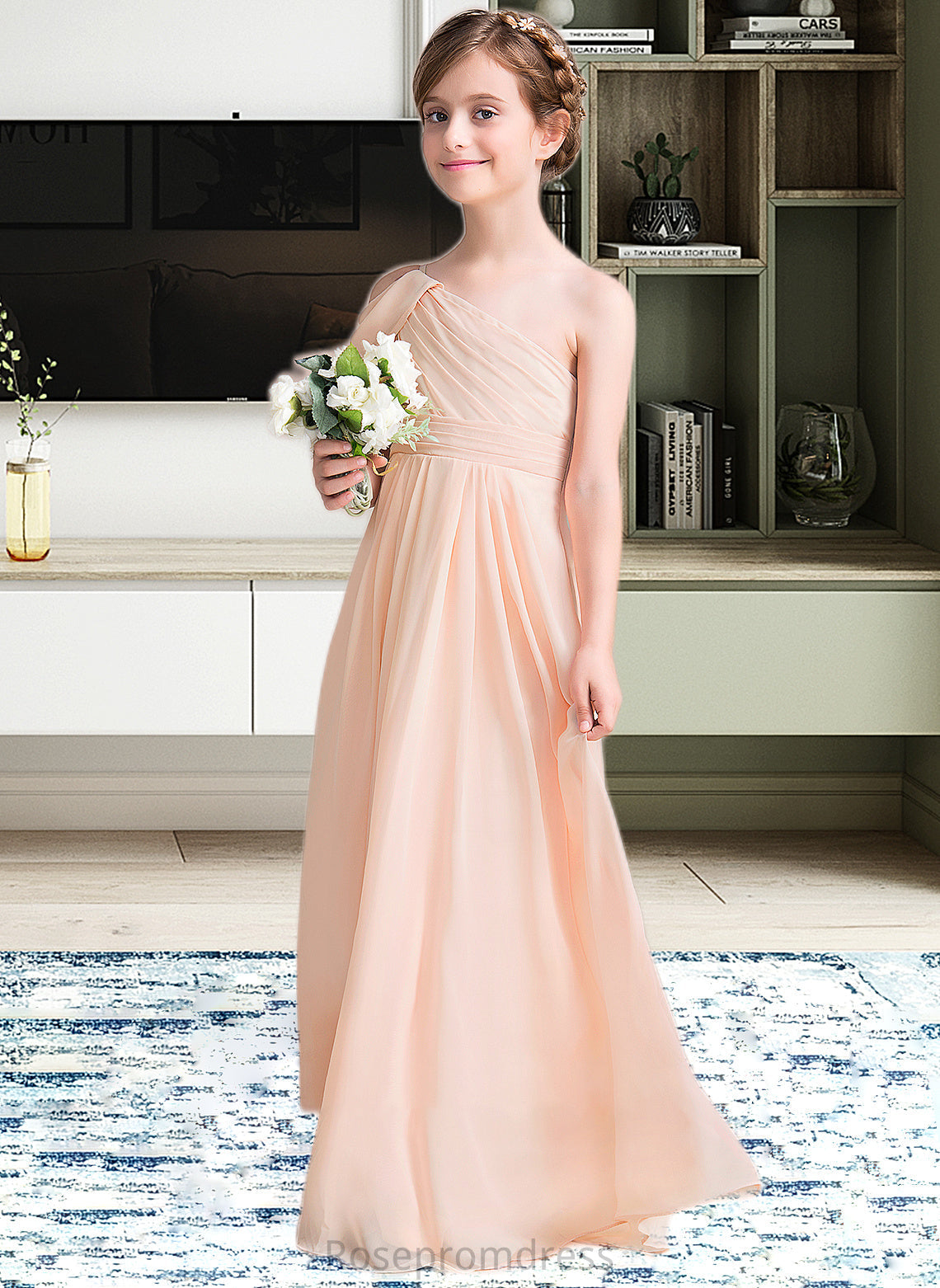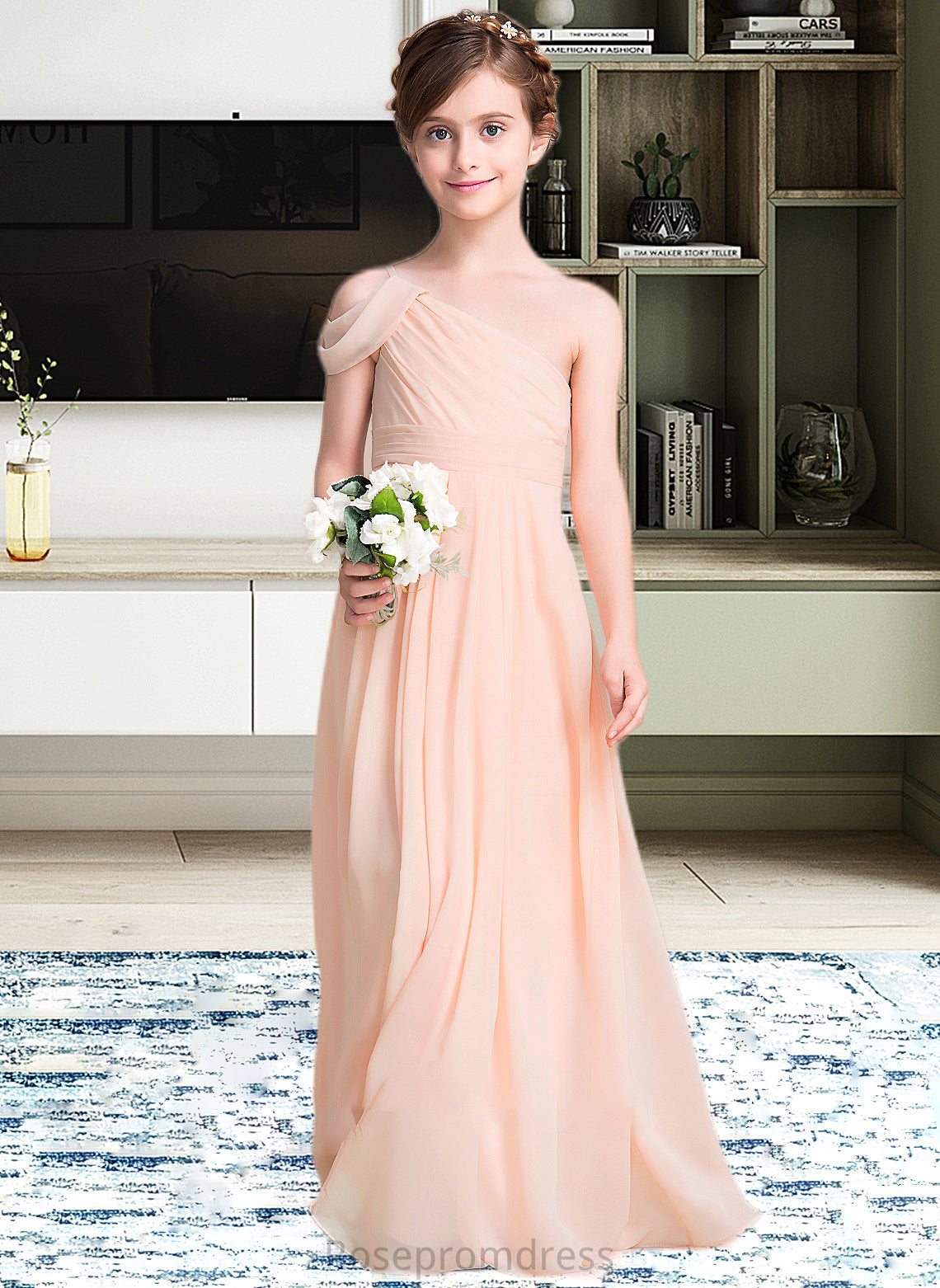 Liberty A-Line One-Shoulder Floor-Length Chiffon Junior Bridesmaid Dress With Ruffle SRSP0013594