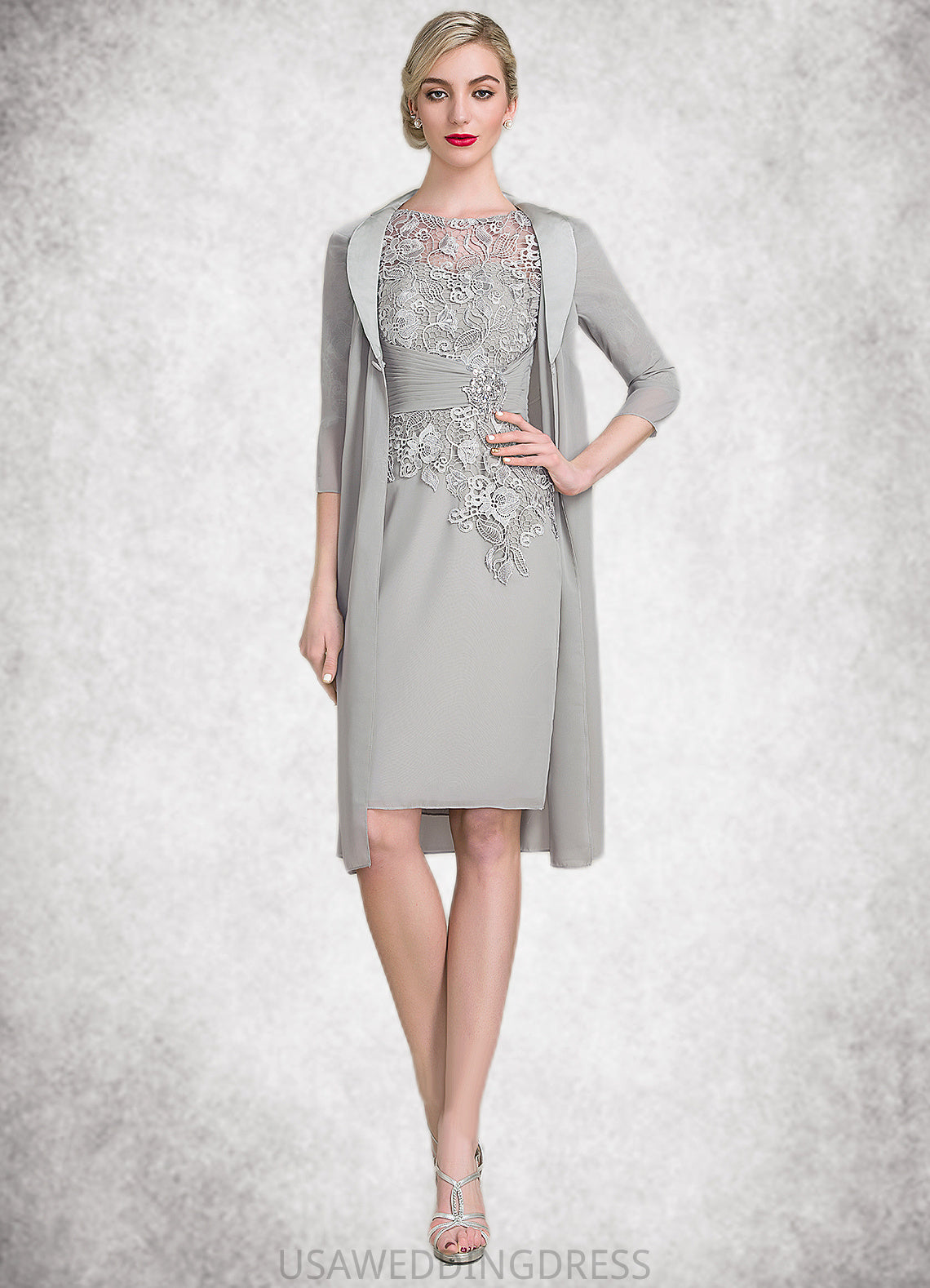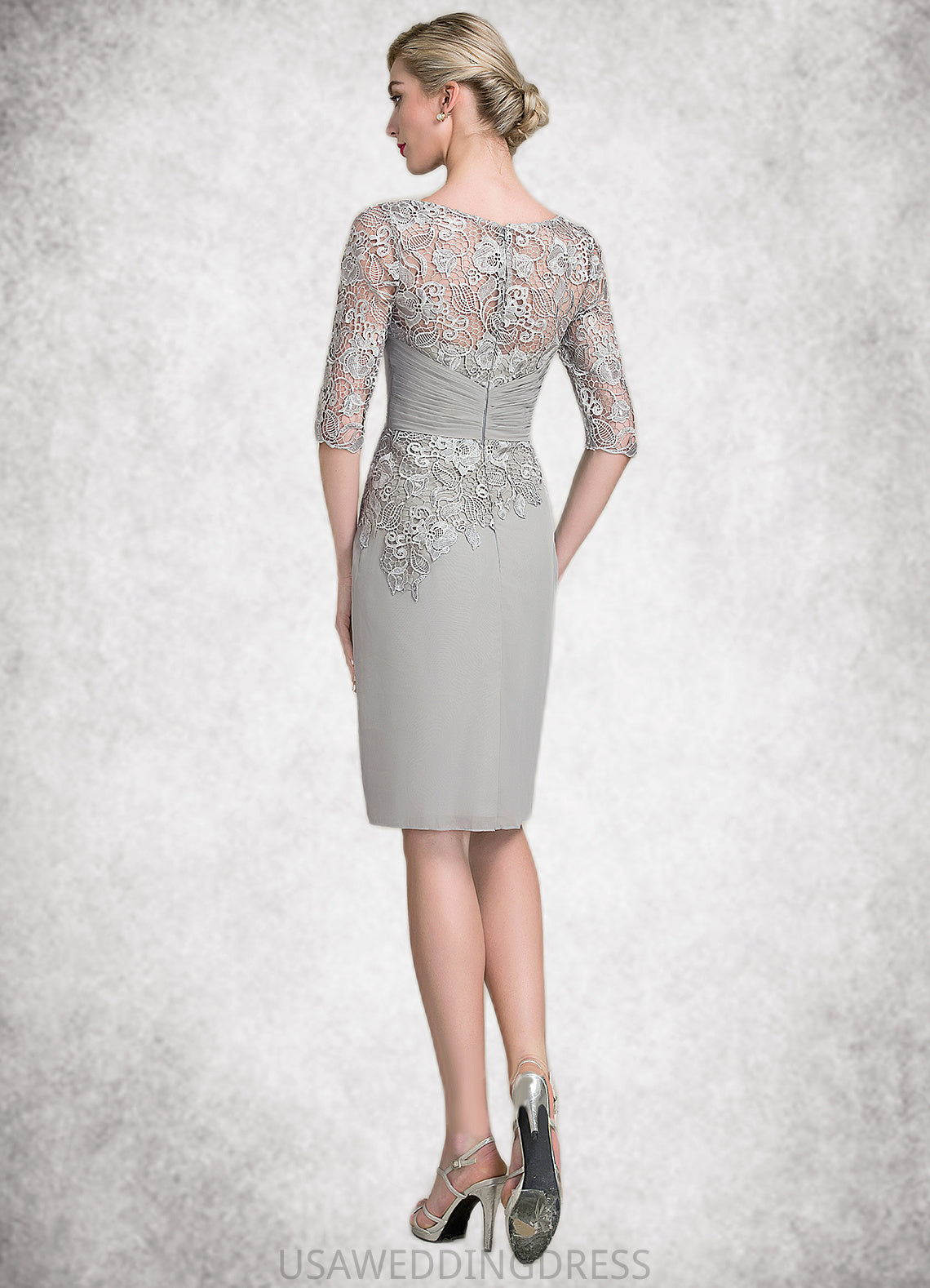 Lillian Sheath/Column Scoop Neck Knee-Length Chiffon Lace Mother of the Bride Dress With Ruffle Beading DS126P0014821