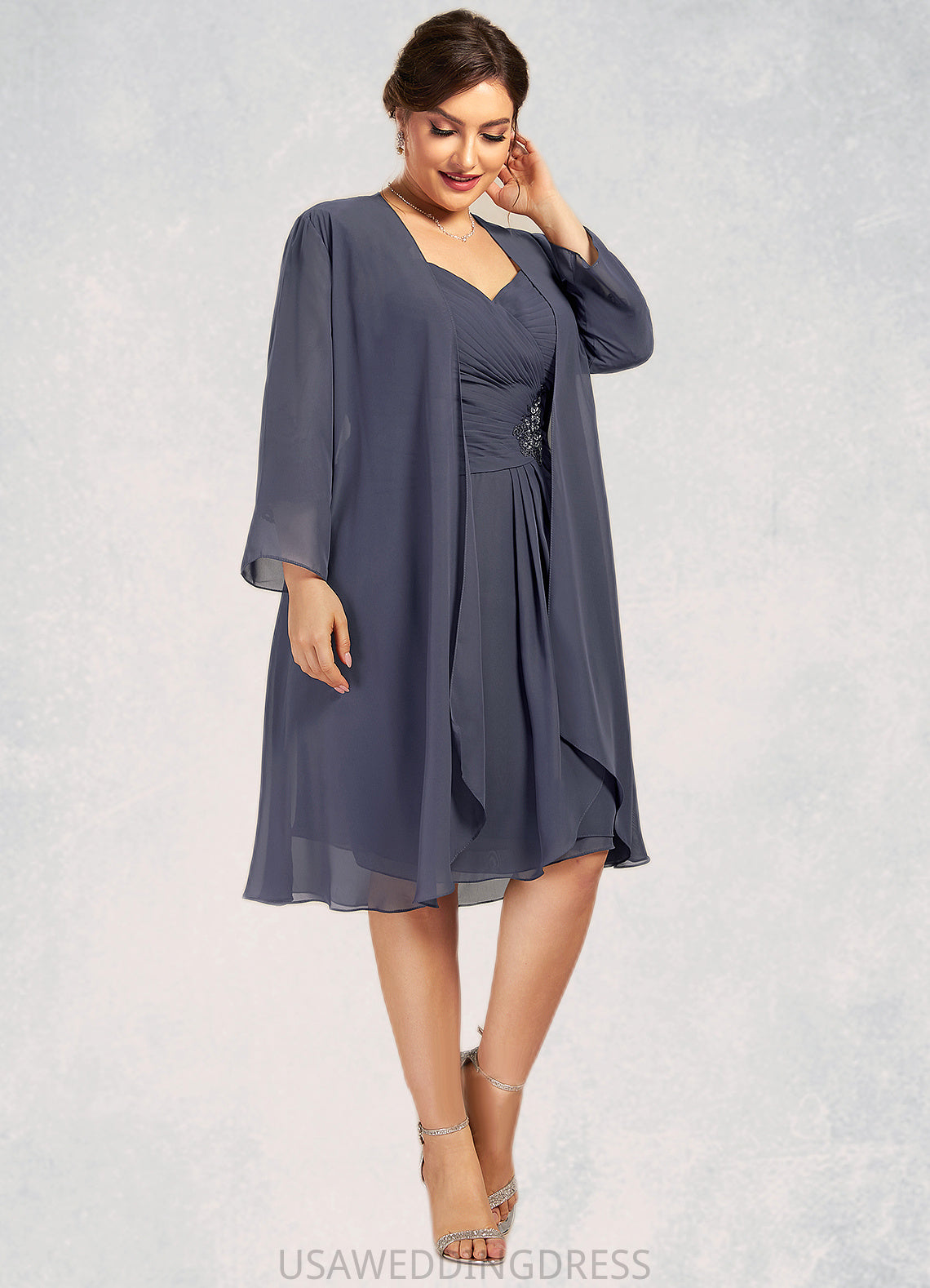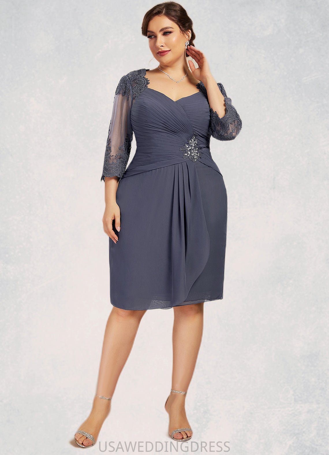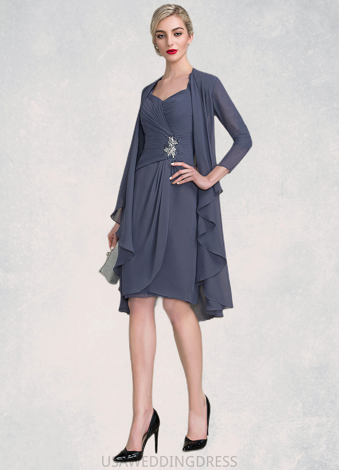 Lillian Sheath/Column Sweetheart Knee-Length Chiffon Mother of the Bride Dress With Ruffle Beading Appliques Lace Sequins DS126P0014572