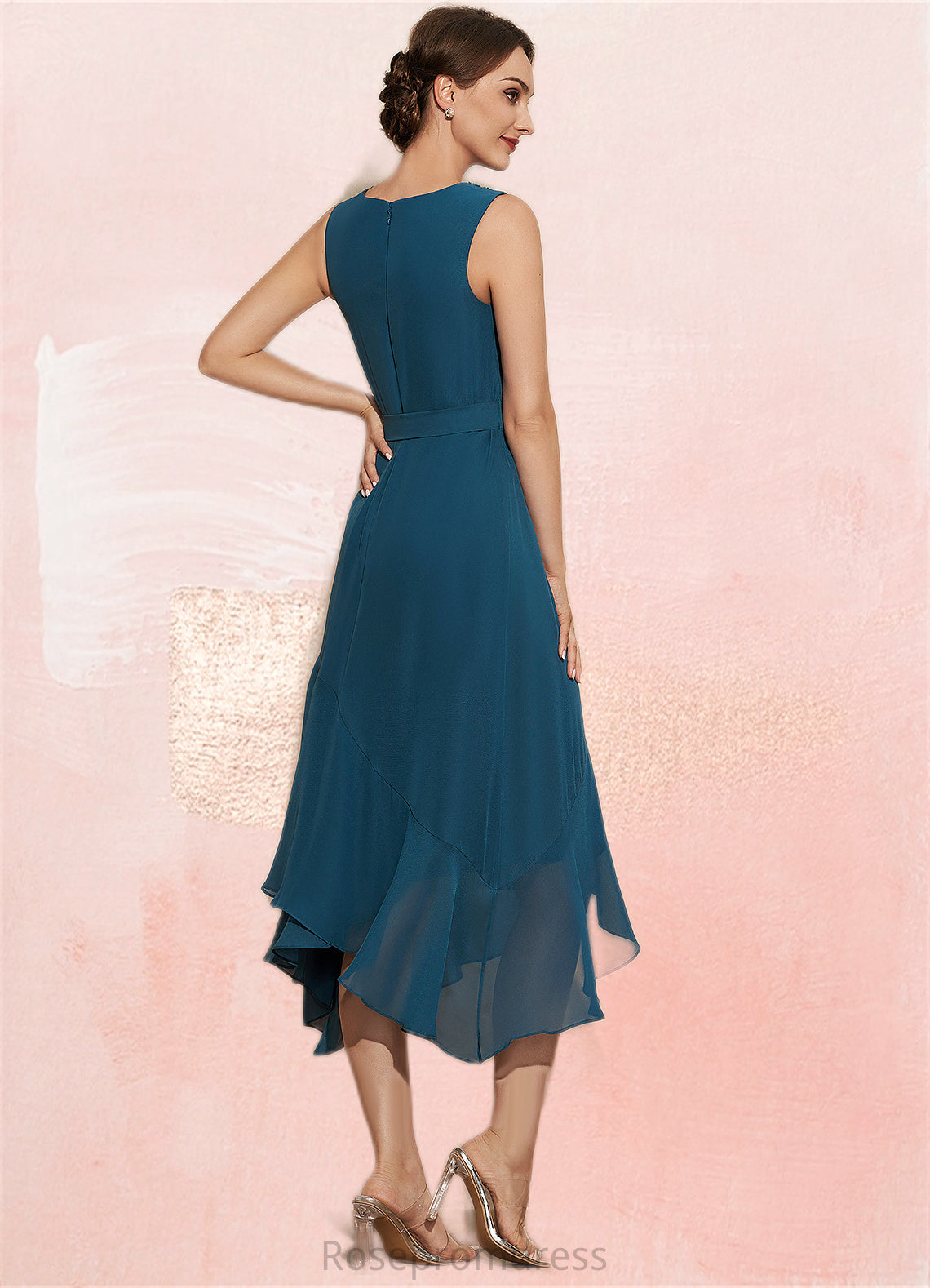 Lilliana A-Line Scoop Neck Asymmetrical Chiffon Mother of the Bride Dress With Beading Cascading Ruffles SRS126P0014817