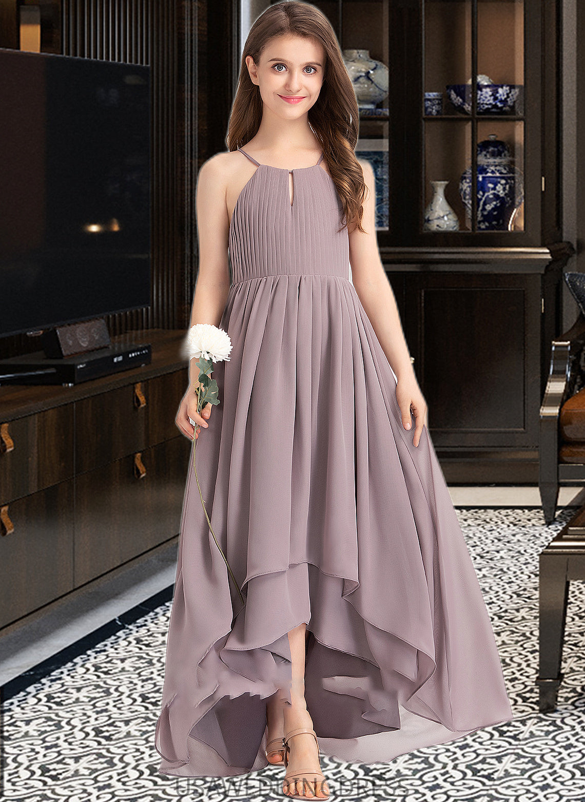 Lilly A-Line Scoop Neck Asymmetrical Chiffon Junior Bridesmaid Dress With Ruffle Bow(s) DSP0013326