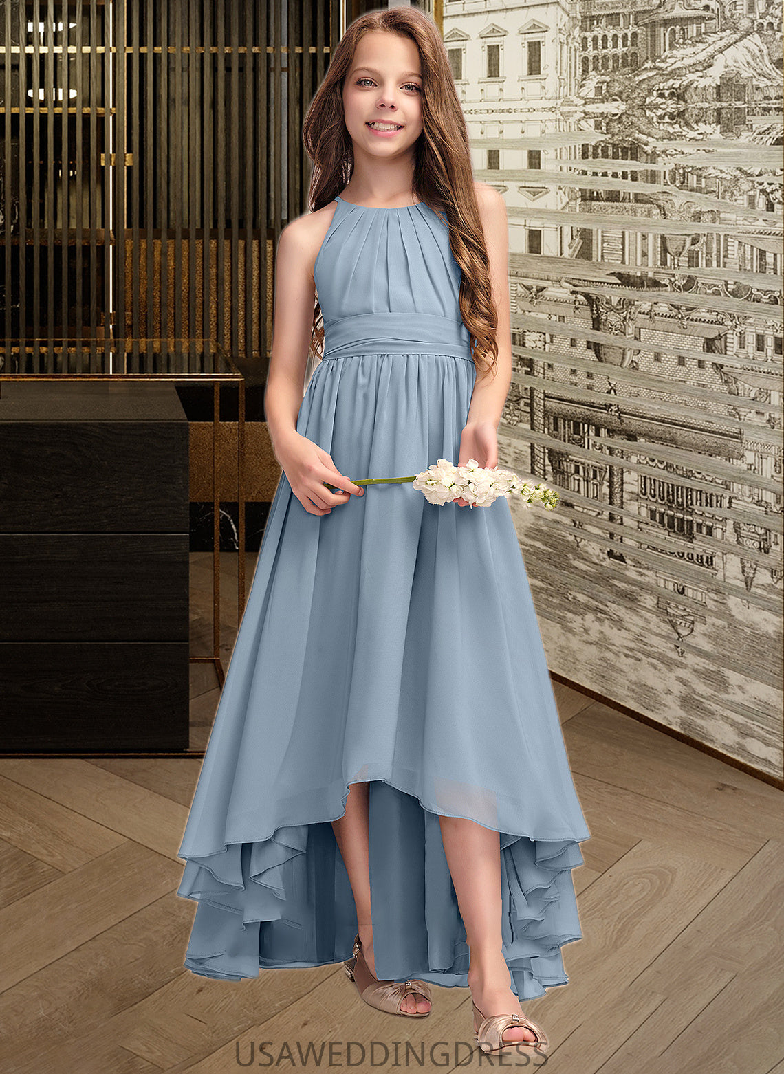 Lilyana A-Line Scoop Neck Asymmetrical Chiffon Junior Bridesmaid Dress With Ruffle Bow(s) DSP0013314