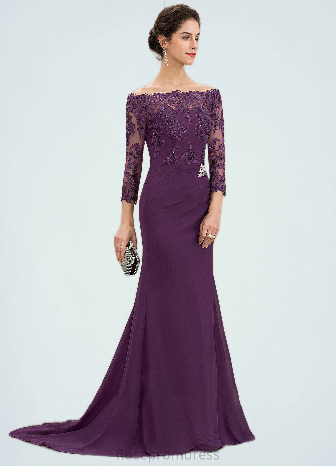 Liz Trumpet/Mermaid Off-the-Shoulder Sweep Train Chiffon Lace Mother of the Bride Dress With Beading Sequins SRS126P0014604