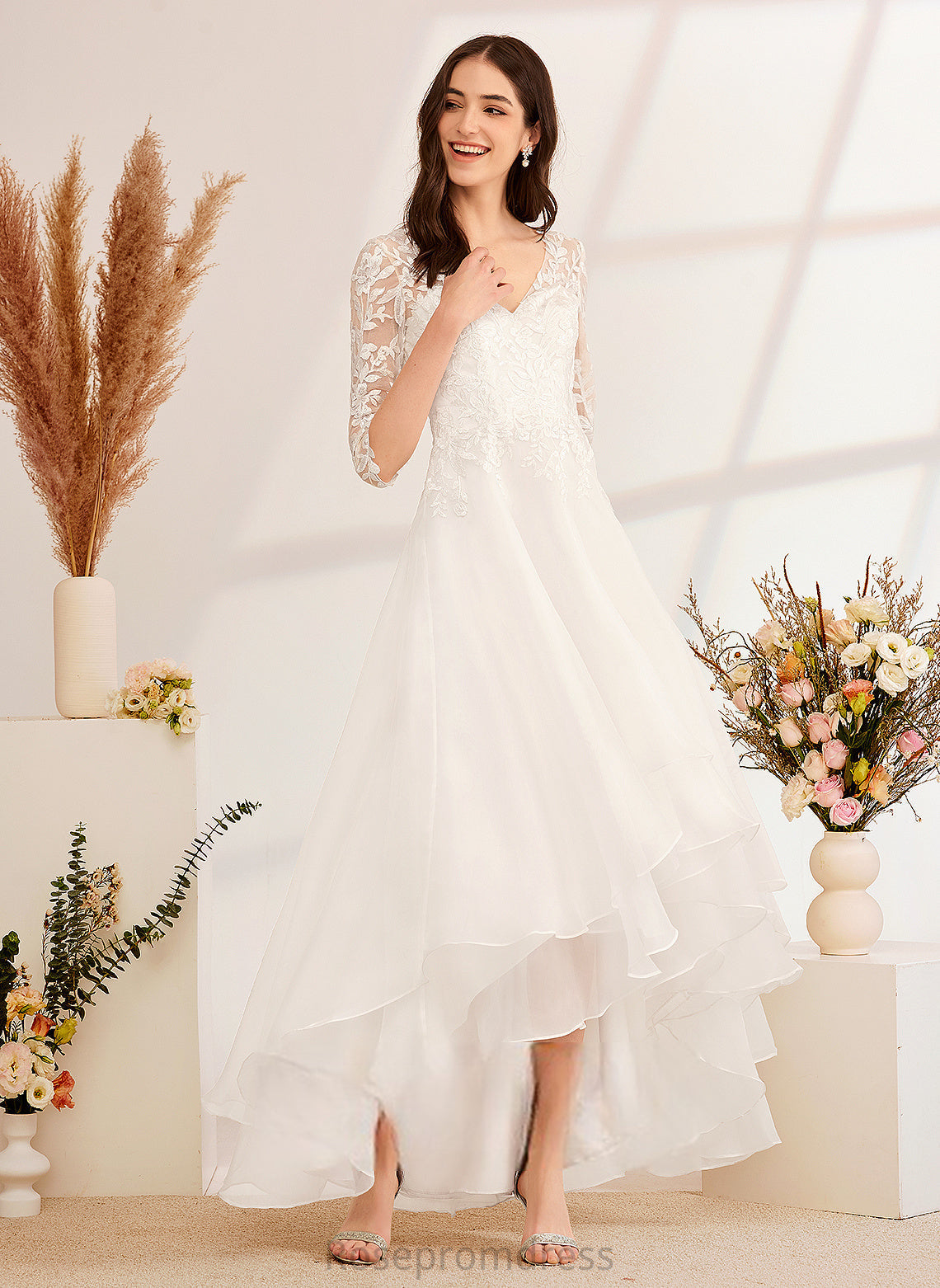 Lizeth Lace Dress Wedding Dresses Sequins Asymmetrical With Beading Tulle Wedding V-neck A-Line
