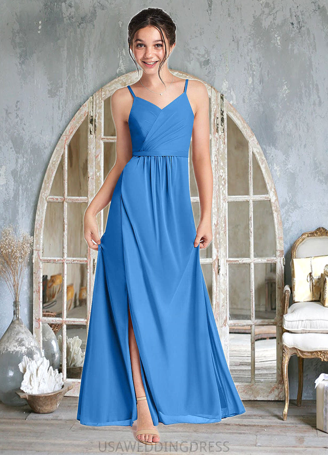 Lola Pleated Mesh Floor-Length Junior Bridesmaid Dress Blue Jay DSP0022861