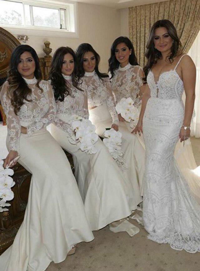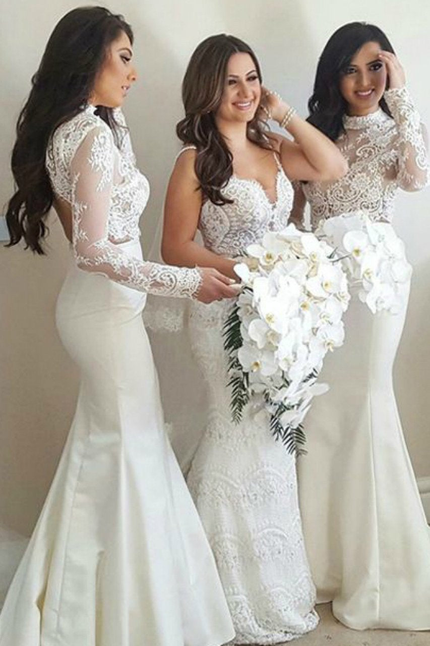 Long Sleeve Mermaid High Neck Ivory Bridesmaid Dress with Lace,Wedding Party SRS20486