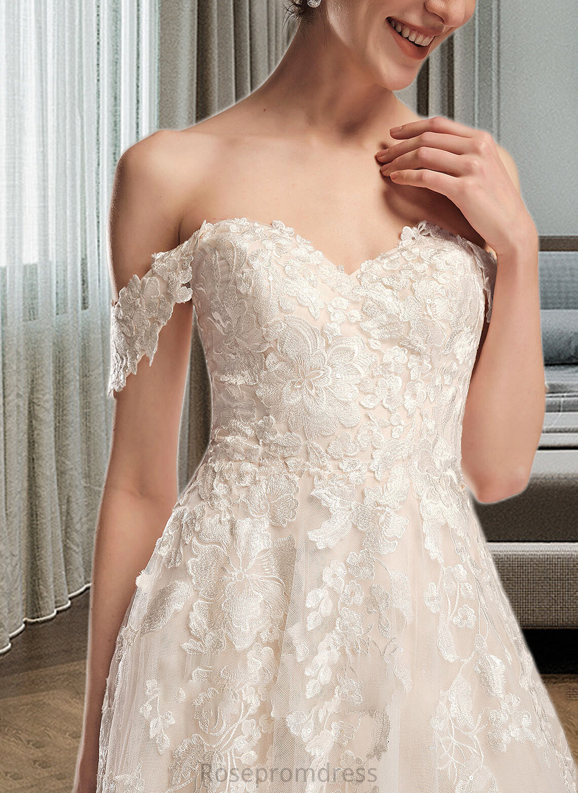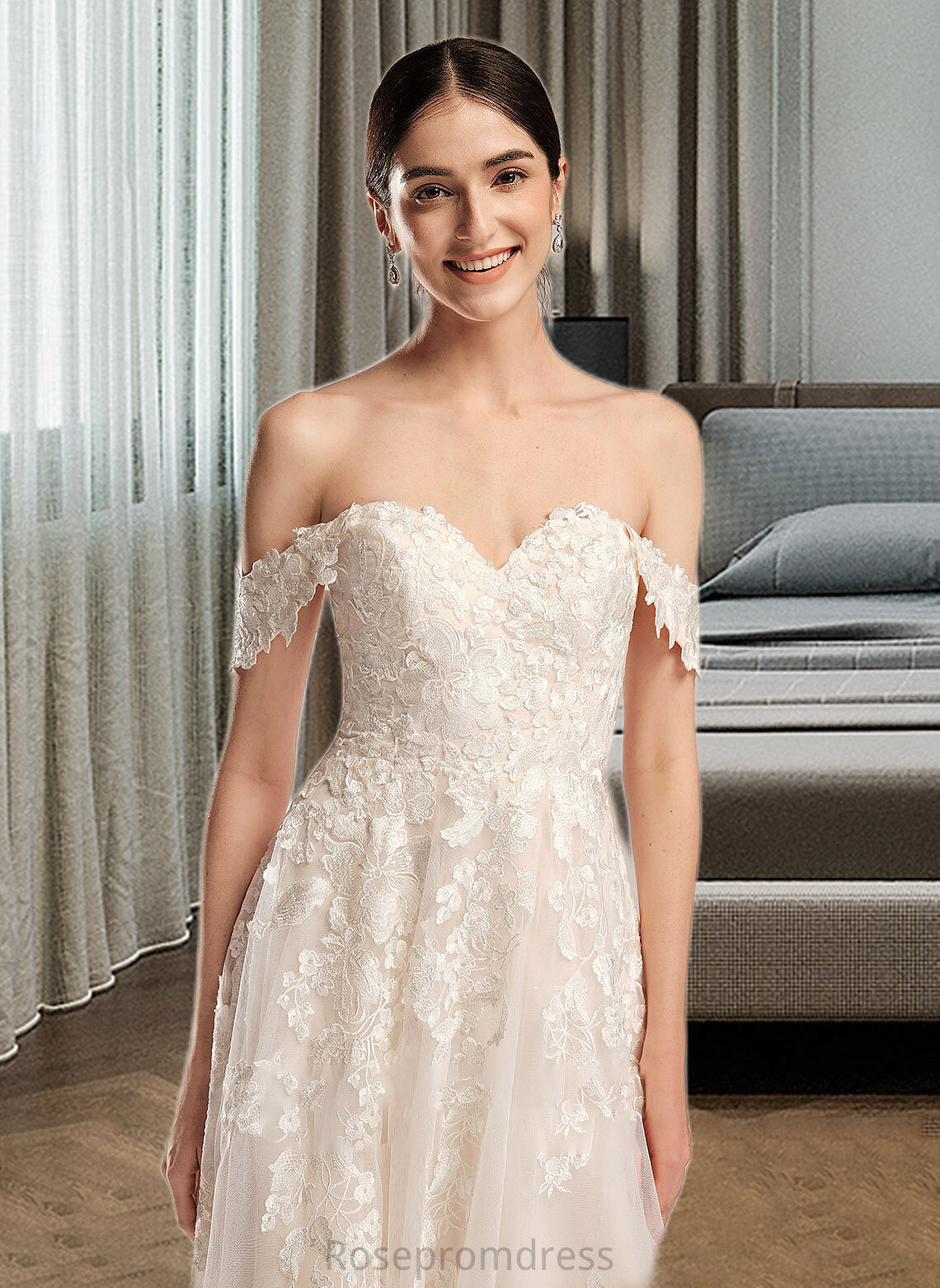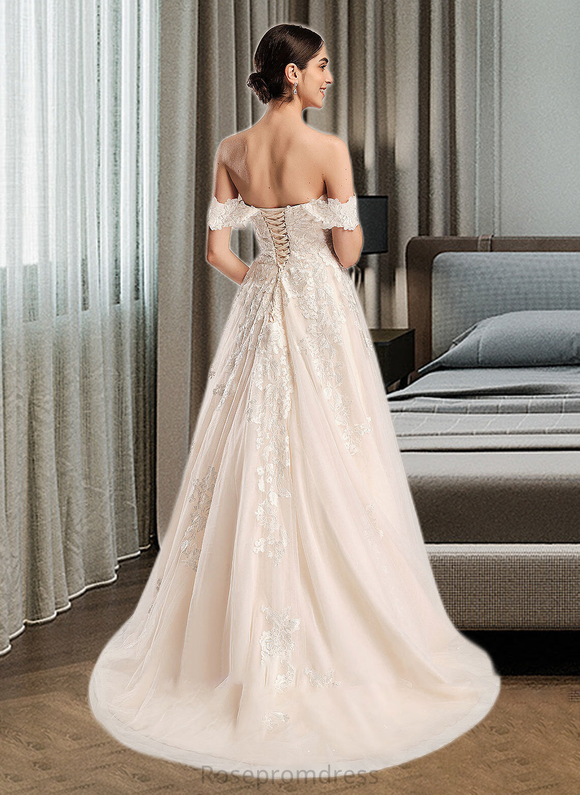 Lorena Ball-Gown/Princess Off-the-Shoulder Chapel Train Wedding Dress SRSP0013742
