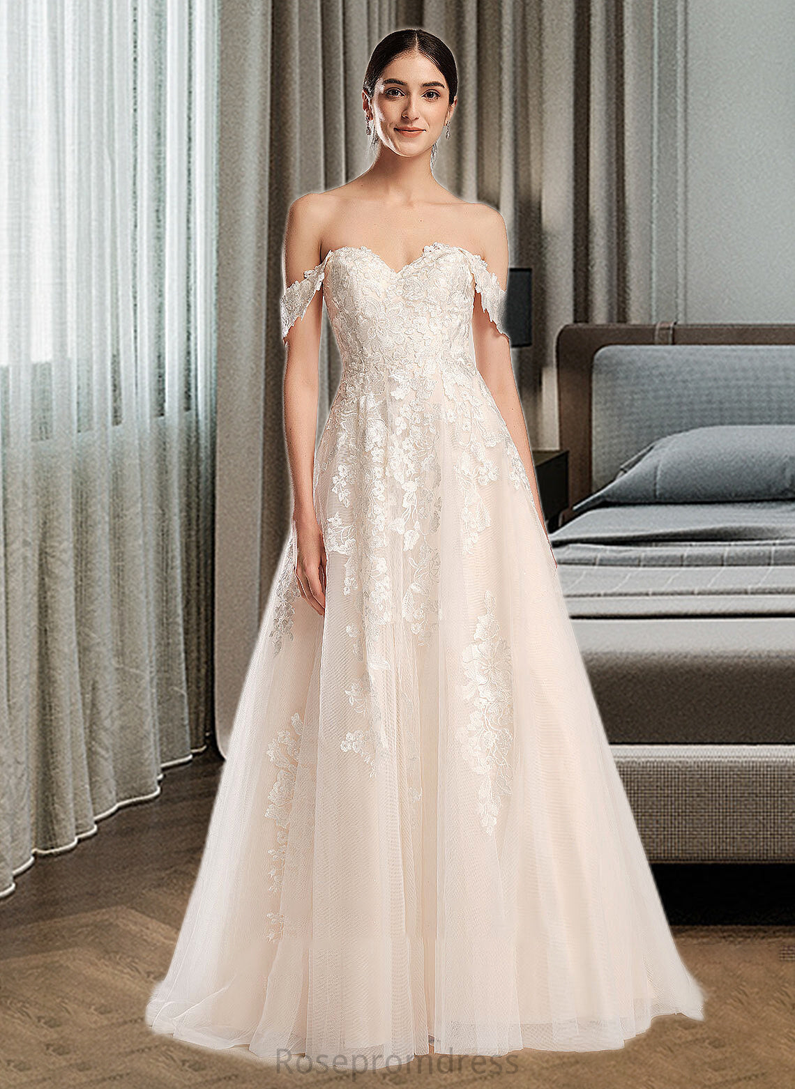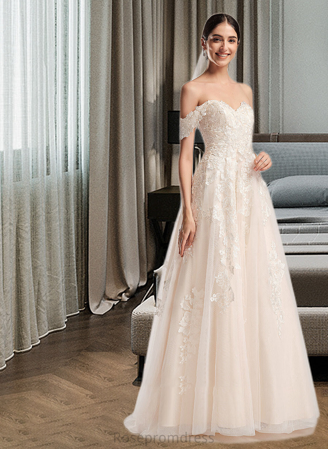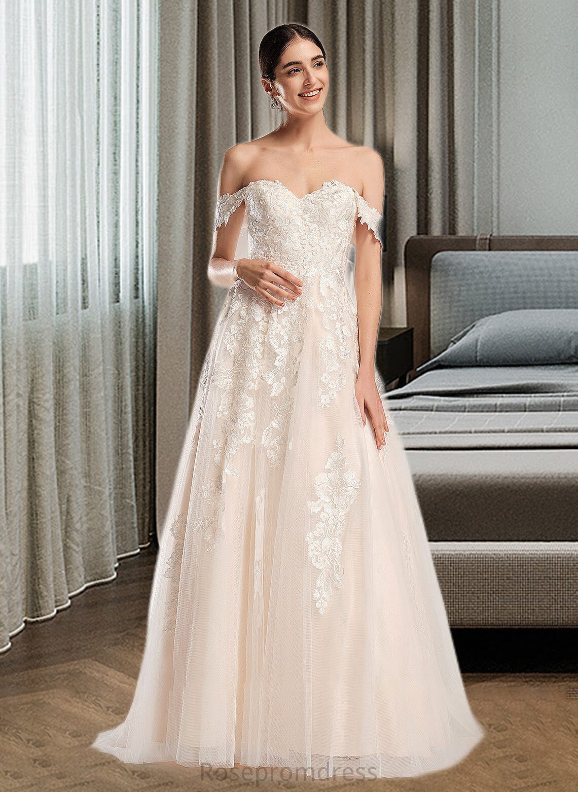 Lorena Ball-Gown/Princess Off-the-Shoulder Chapel Train Wedding Dress SRSP0013742