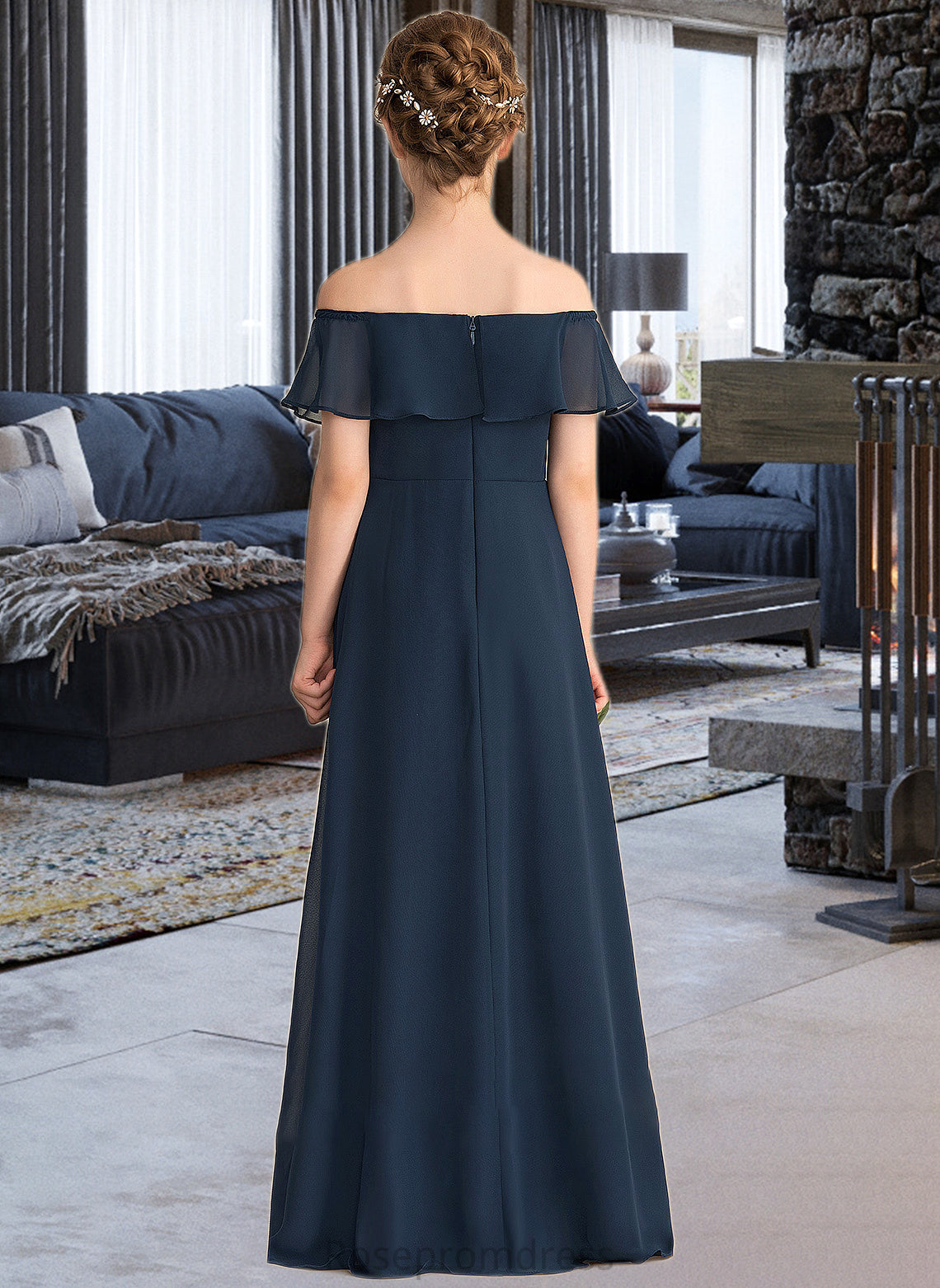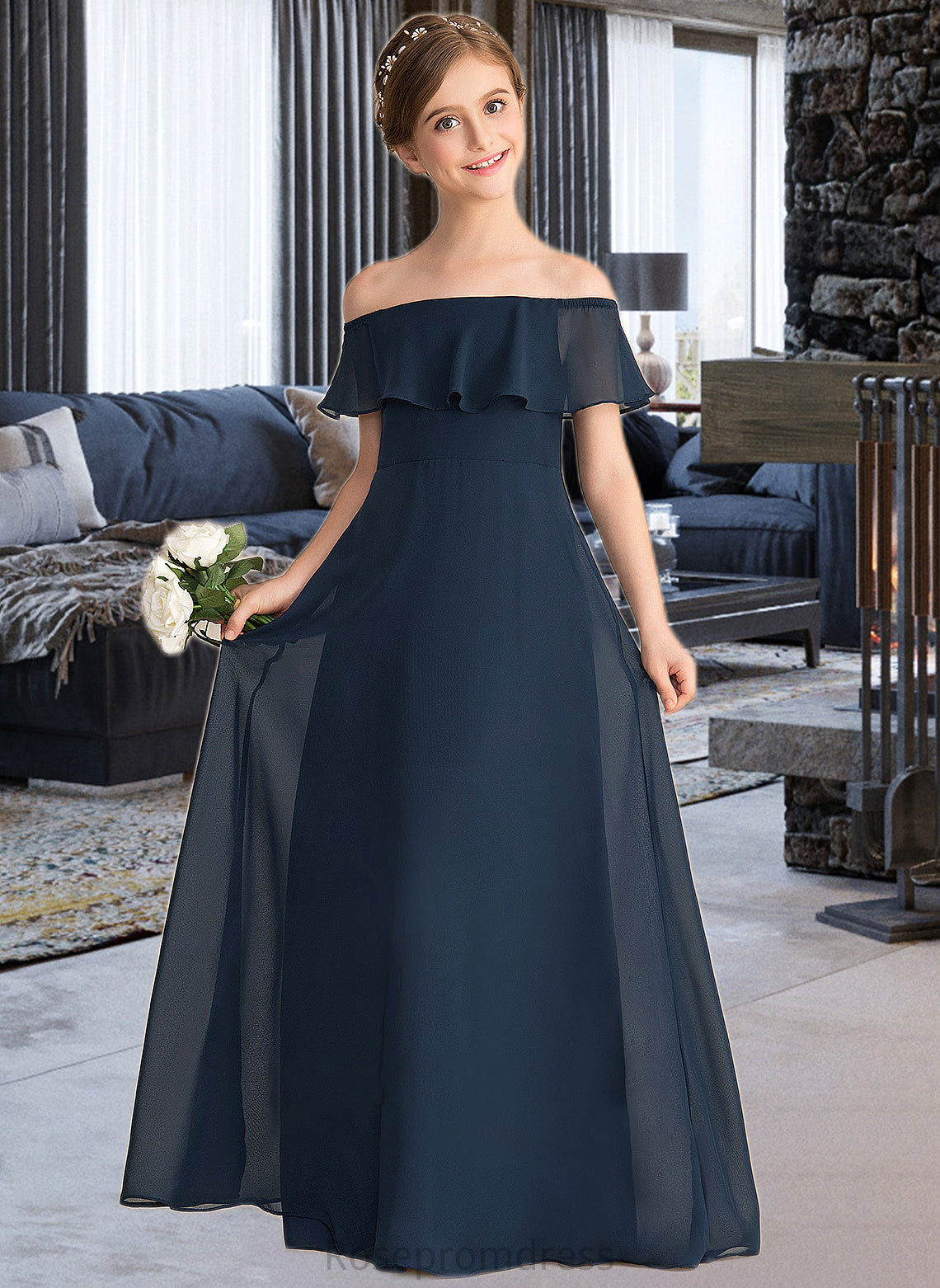 Louise A-Line Off-the-Shoulder Floor-Length Chiffon Junior Bridesmaid Dress With Cascading Ruffles SRSP0013431