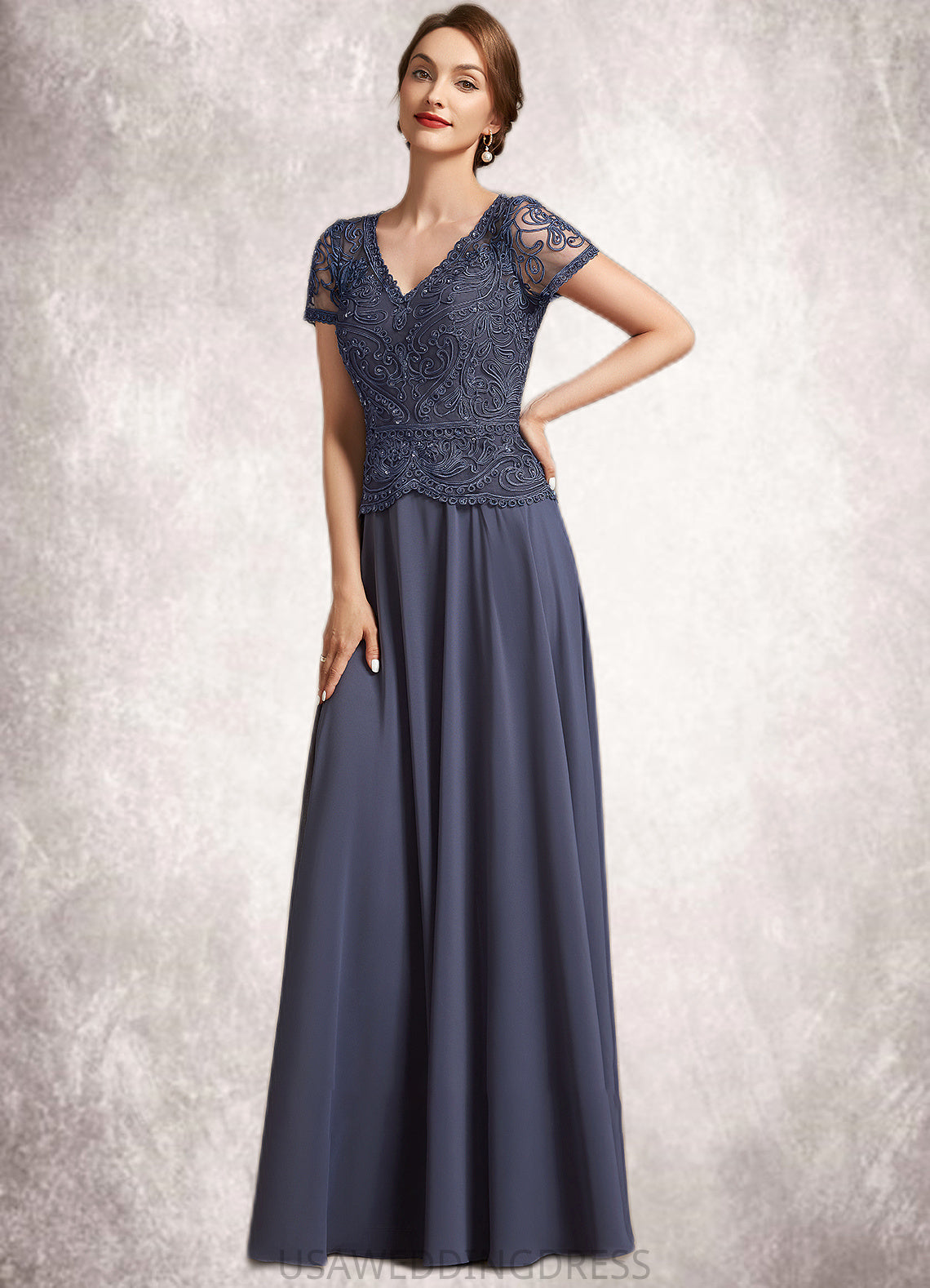 Lucile A-Line V-neck Floor-Length Chiffon Lace Mother of the Bride Dress With Sequins DS126P0014964