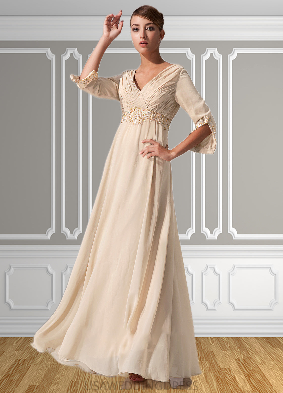 Lucy Empire V-neck Floor-Length Chiffon Mother of the Bride Dress With Ruffle Beading DS126P0014597