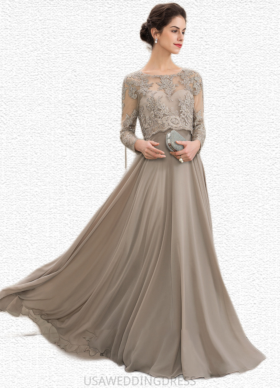 Luna A-Line Scoop Neck Floor-Length Chiffon Lace Mother of the Bride Dress With Sequins DS126P0014612