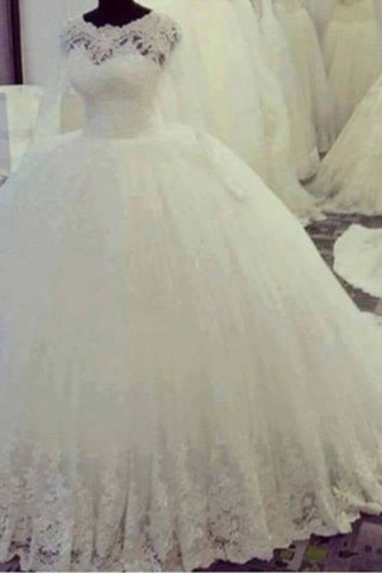 Luxurious Scalloped Ball Gown Wedding Dresses With Long Sleeves