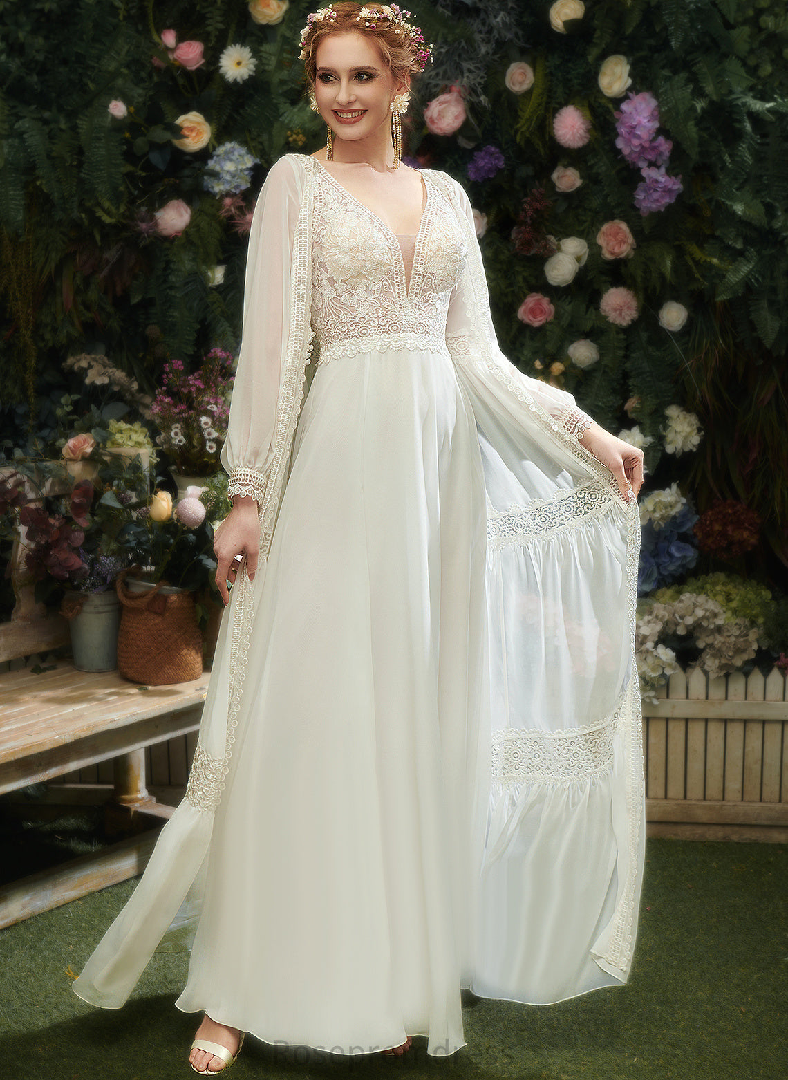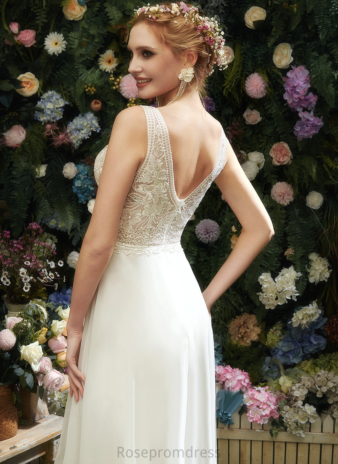 Lyla Dress Chiffon Front V-neck Wedding Dresses Wedding Lace A-Line Floor-Length Split Sequins With