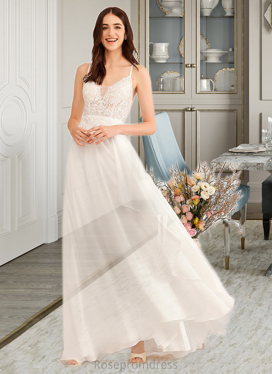 Macie A-Line V-neck Floor-Length Wedding Dress With Sequins SRSP0013797