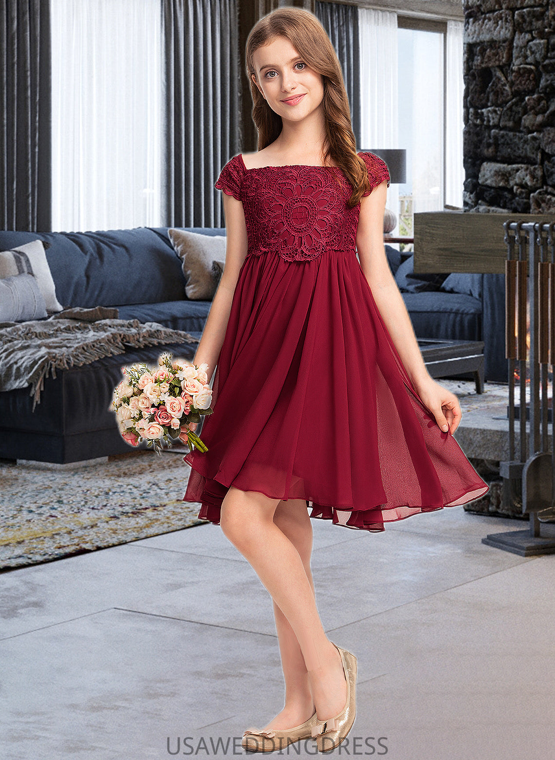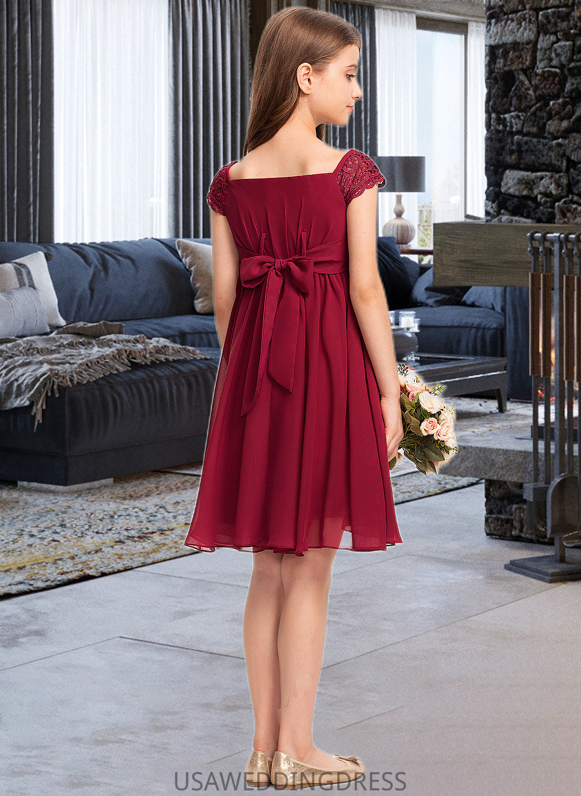Macy A-Line Off-the-Shoulder Knee-Length Chiffon Lace Junior Bridesmaid Dress With Bow(s) DSP0013456