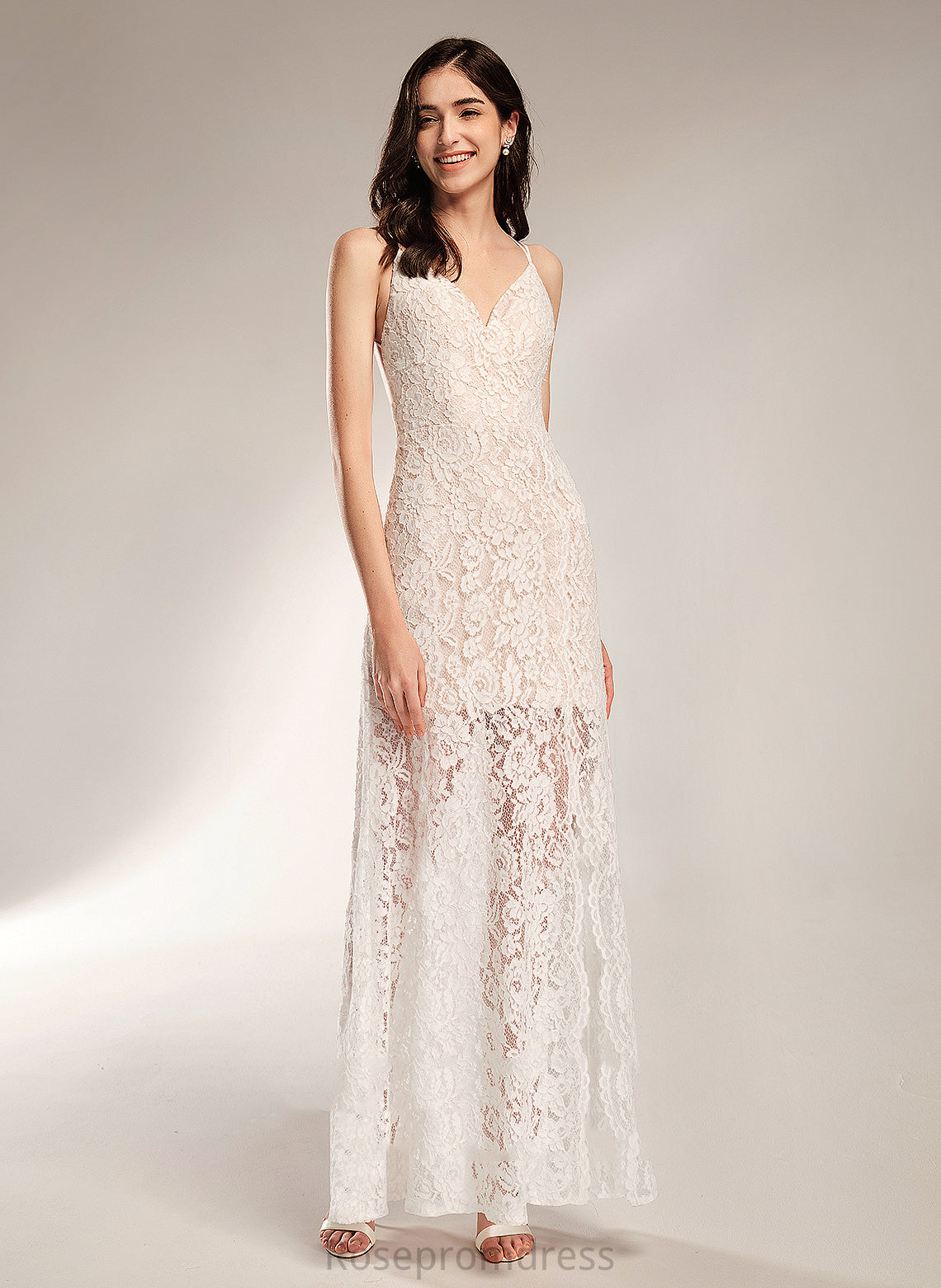 Madeline V-neck Lace Split With Front Floor-Length Sheath/Column Dress Wedding Dresses Wedding