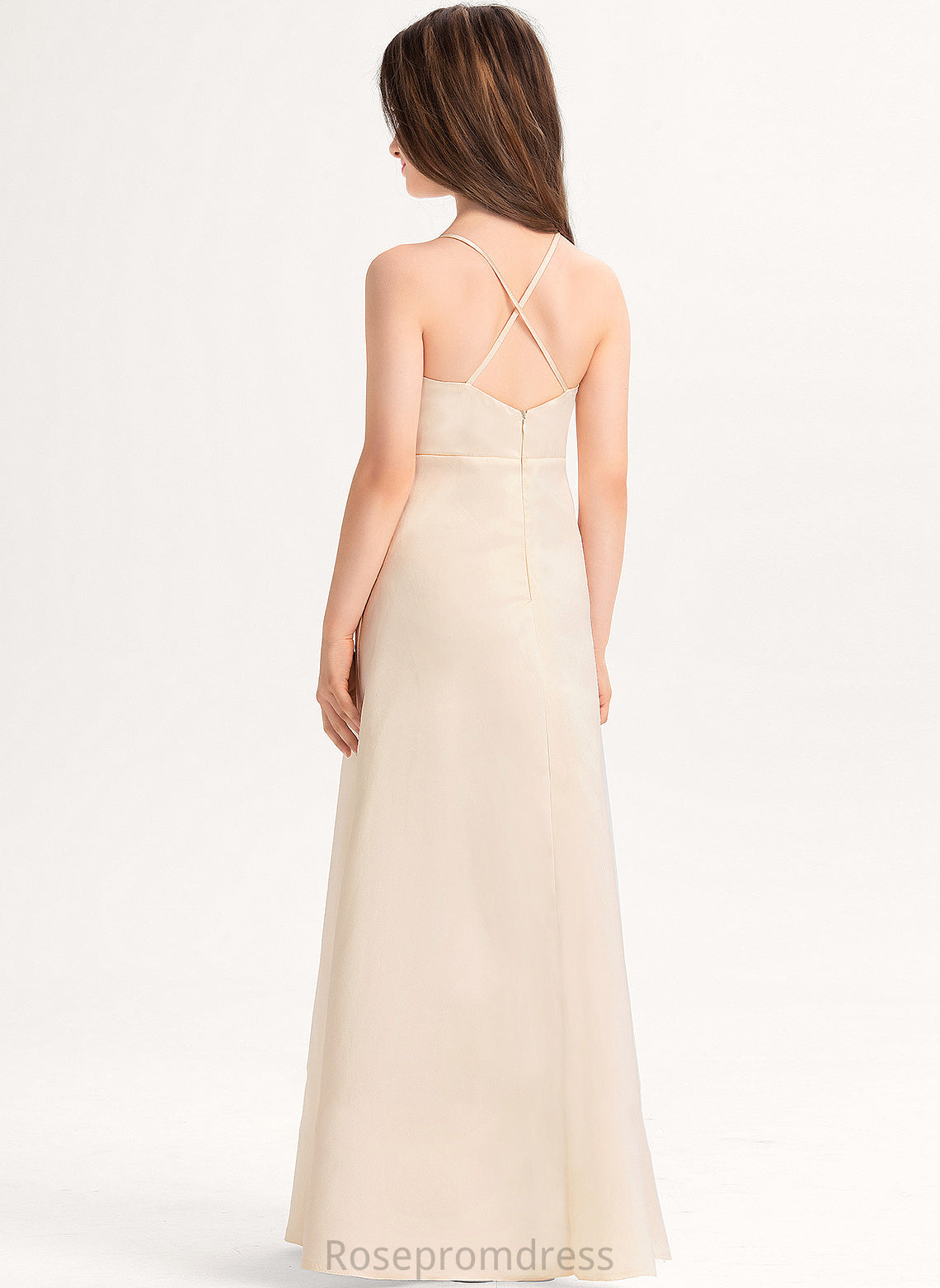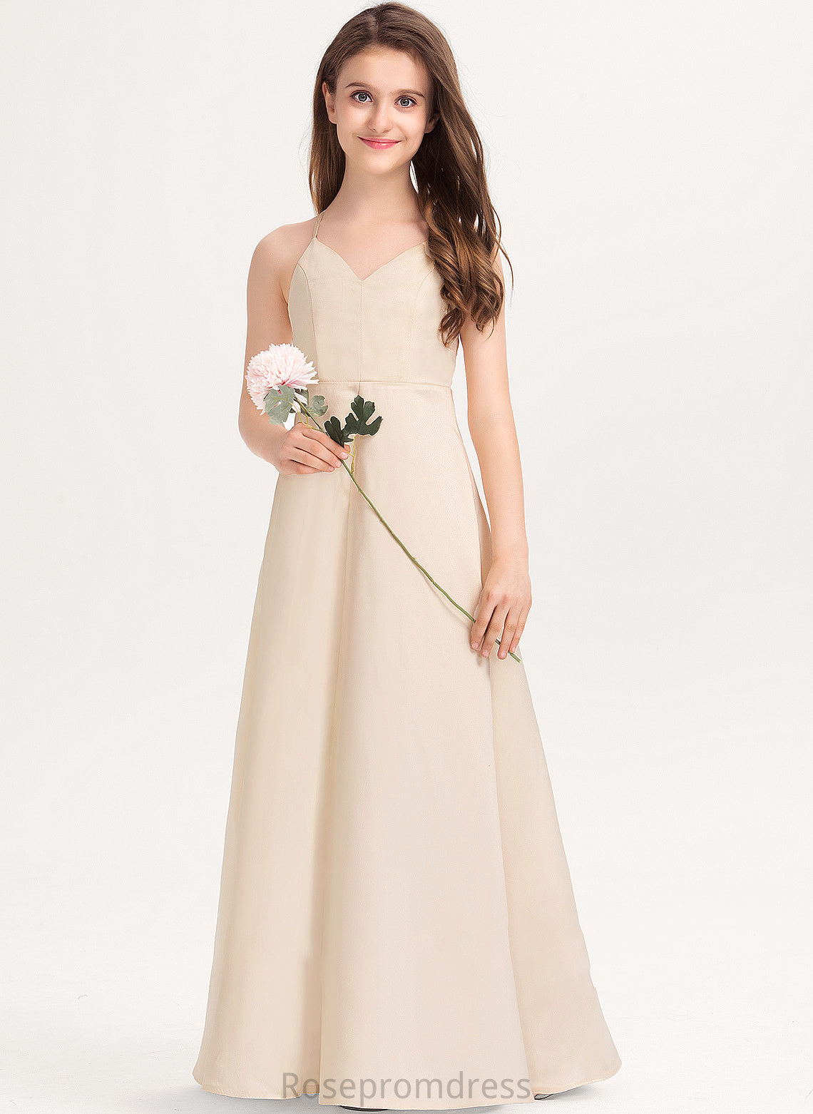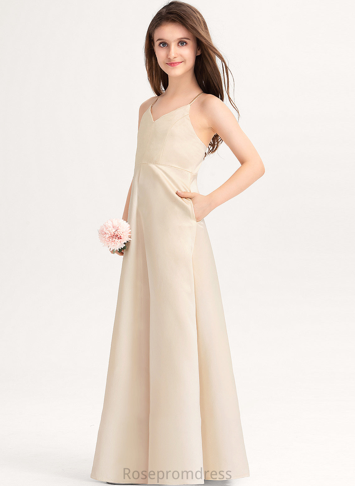 Madison With Floor-Length V-neck Pockets Junior Bridesmaid Dresses A-Line Satin