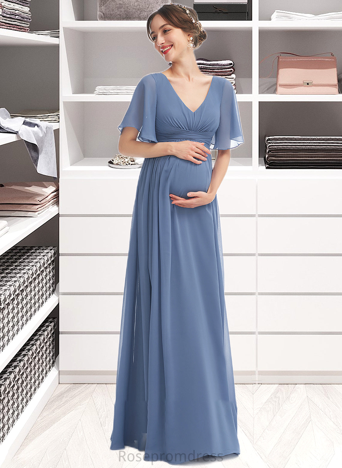 Madyson A-Line V-neck Floor-Length Bridesmaid Dress With Ruffle SRSP0013024