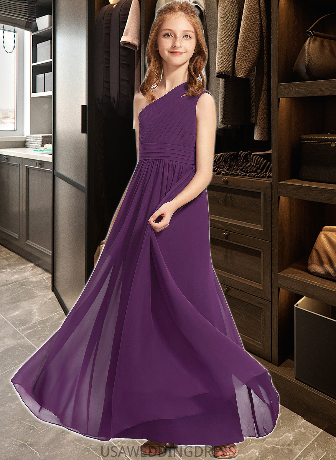 Maeve A-Line One-Shoulder Floor-Length Chiffon Junior Bridesmaid Dress With Ruffle DSP0013527