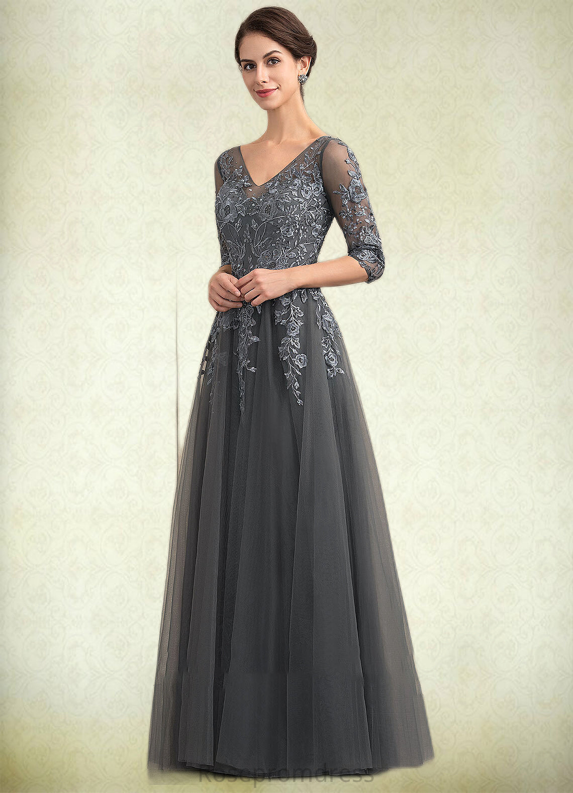 Malia A-Line V-neck Floor-Length Tulle Lace Mother of the Bride Dress With Beading Sequins SRS126P0014895