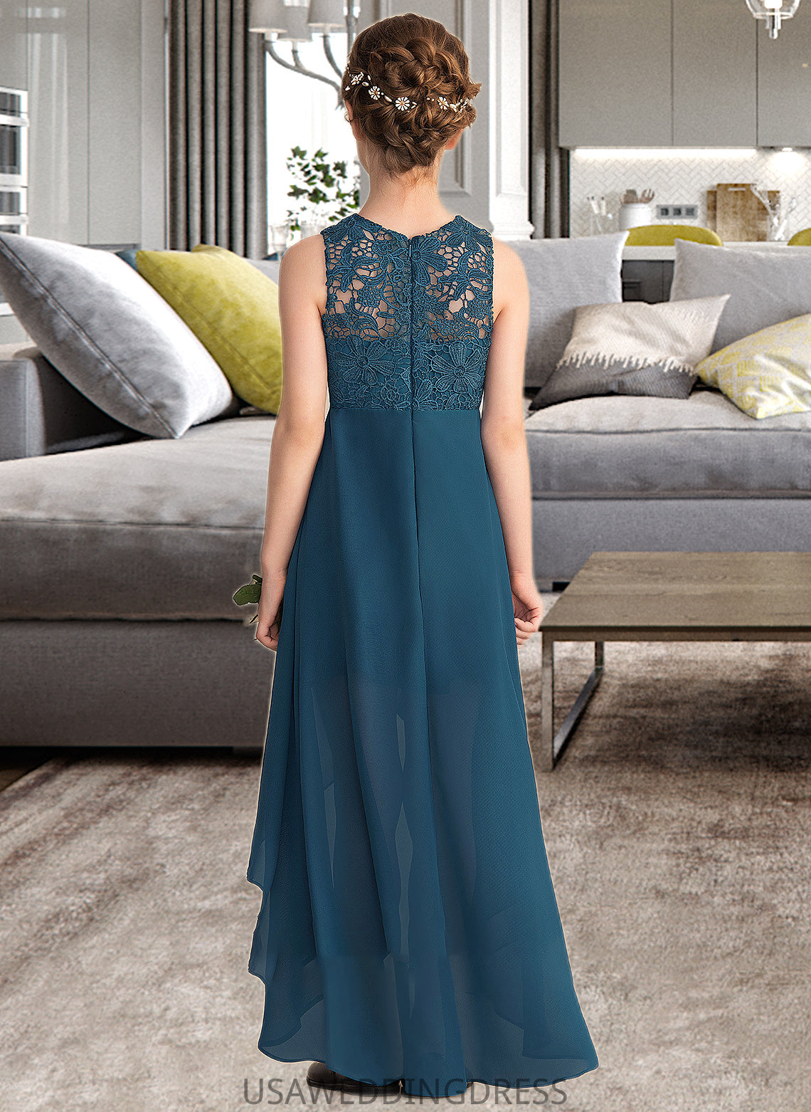 Mara A-Line Scoop Neck Asymmetrical Chiffon Lace Junior Bridesmaid Dress DSP0013661