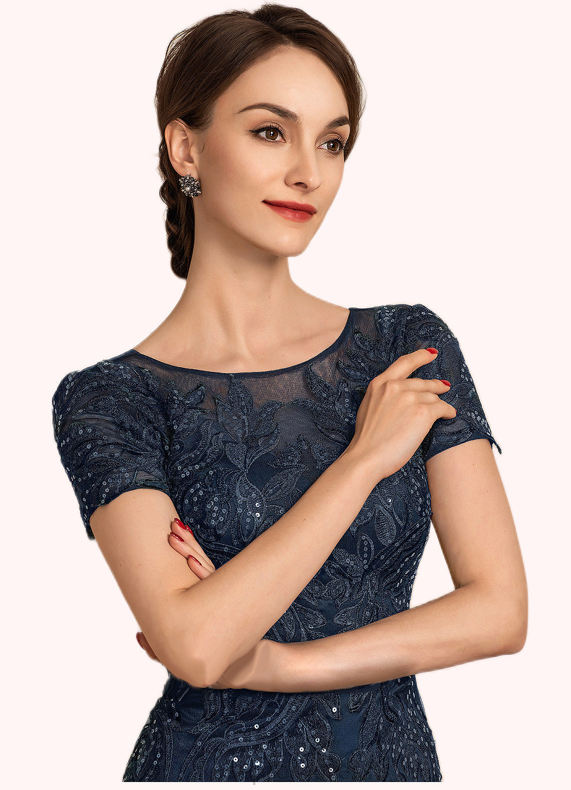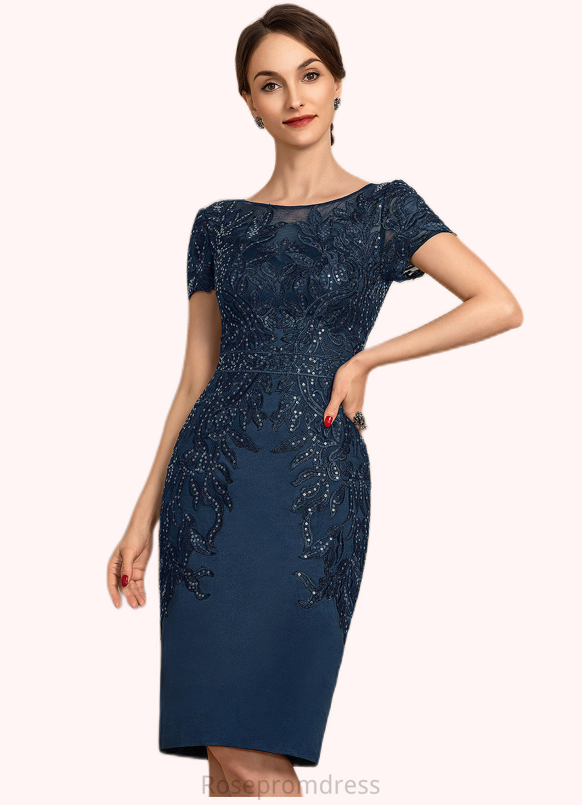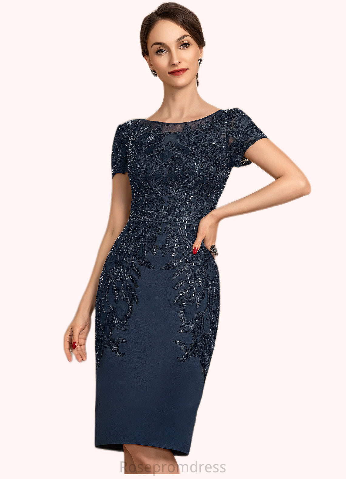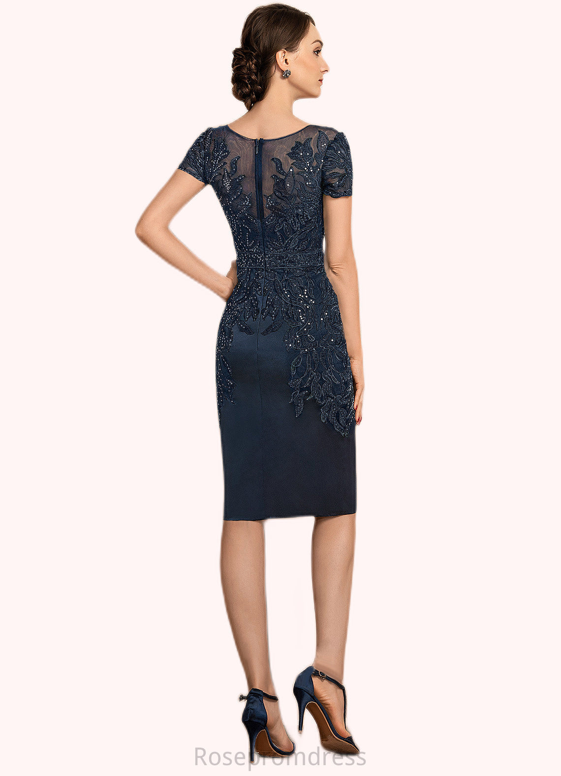 Mara Sheath/Column Scoop Neck Knee-Length Satin Lace Mother of the Bride Dress With Sequins SRSP0014586