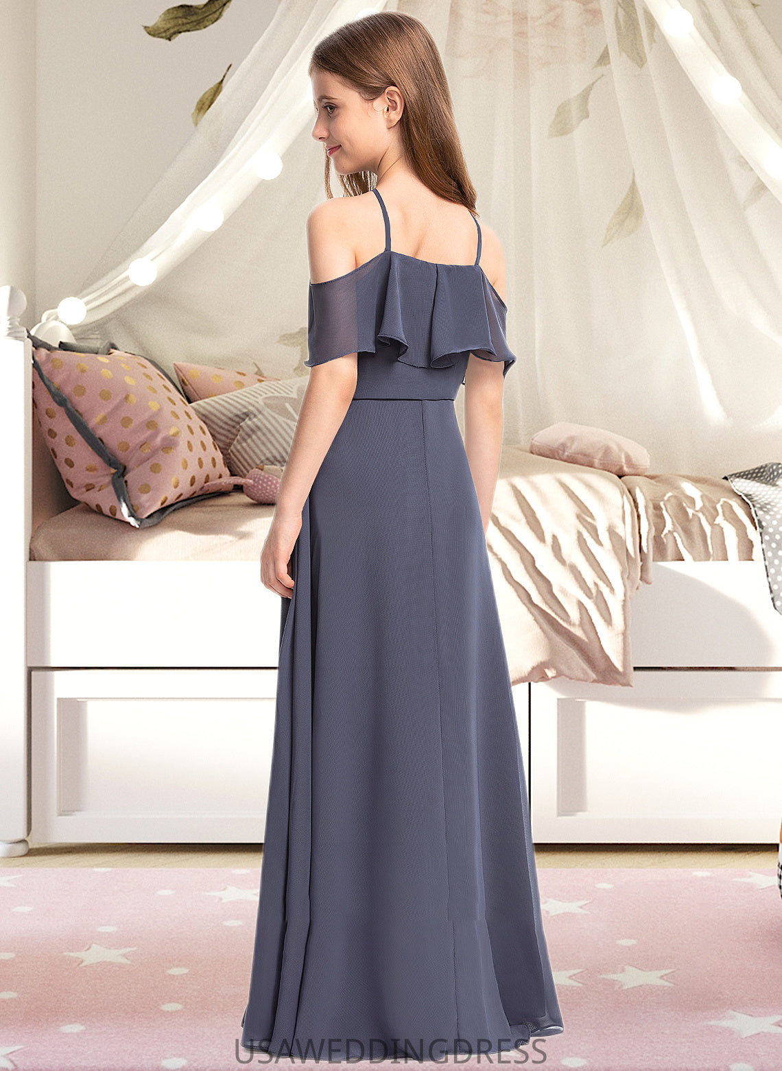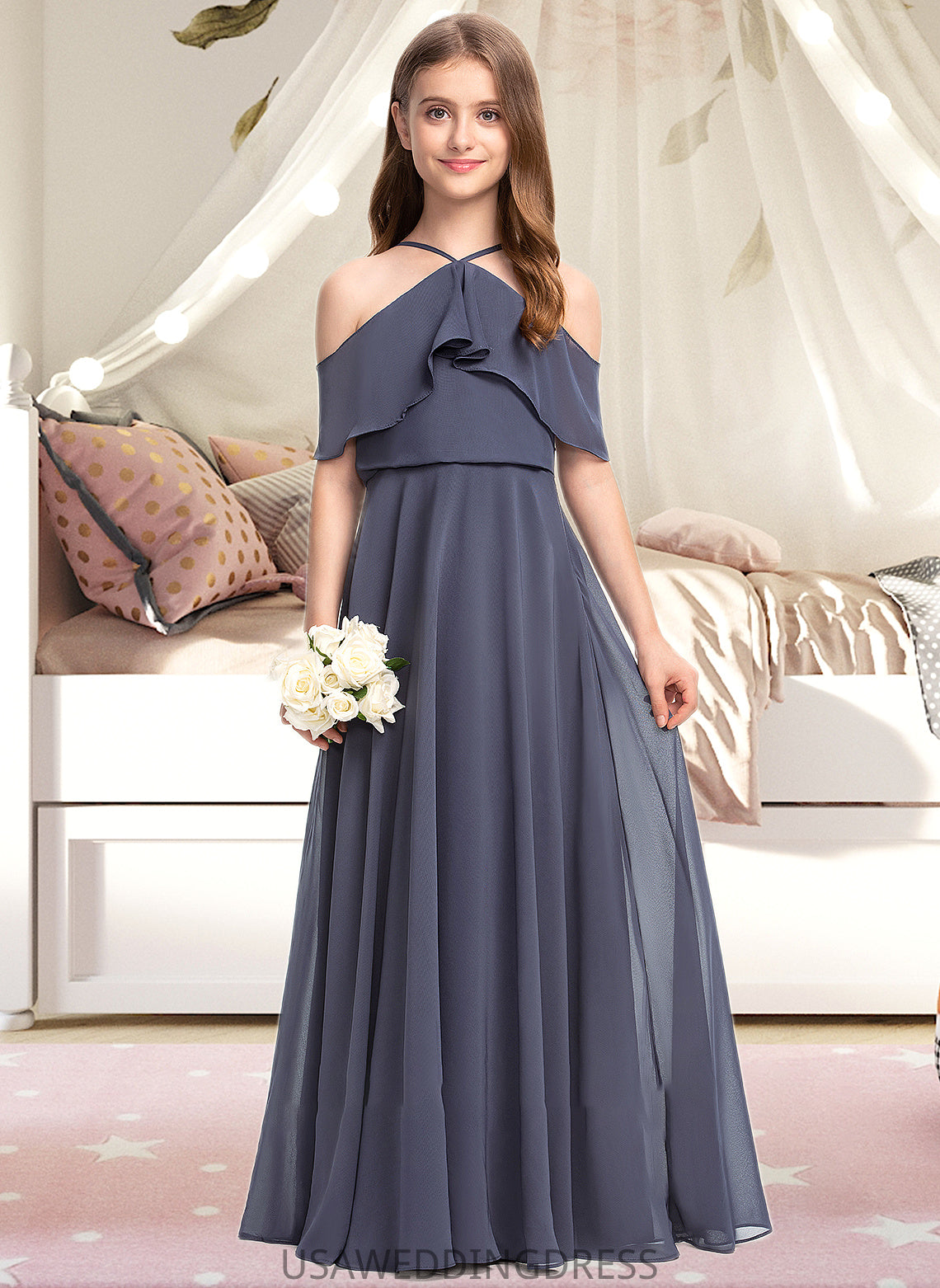 Mariah A-Line Off-the-Shoulder Floor-Length Chiffon Junior Bridesmaid Dress With Cascading Ruffles DSP0013415