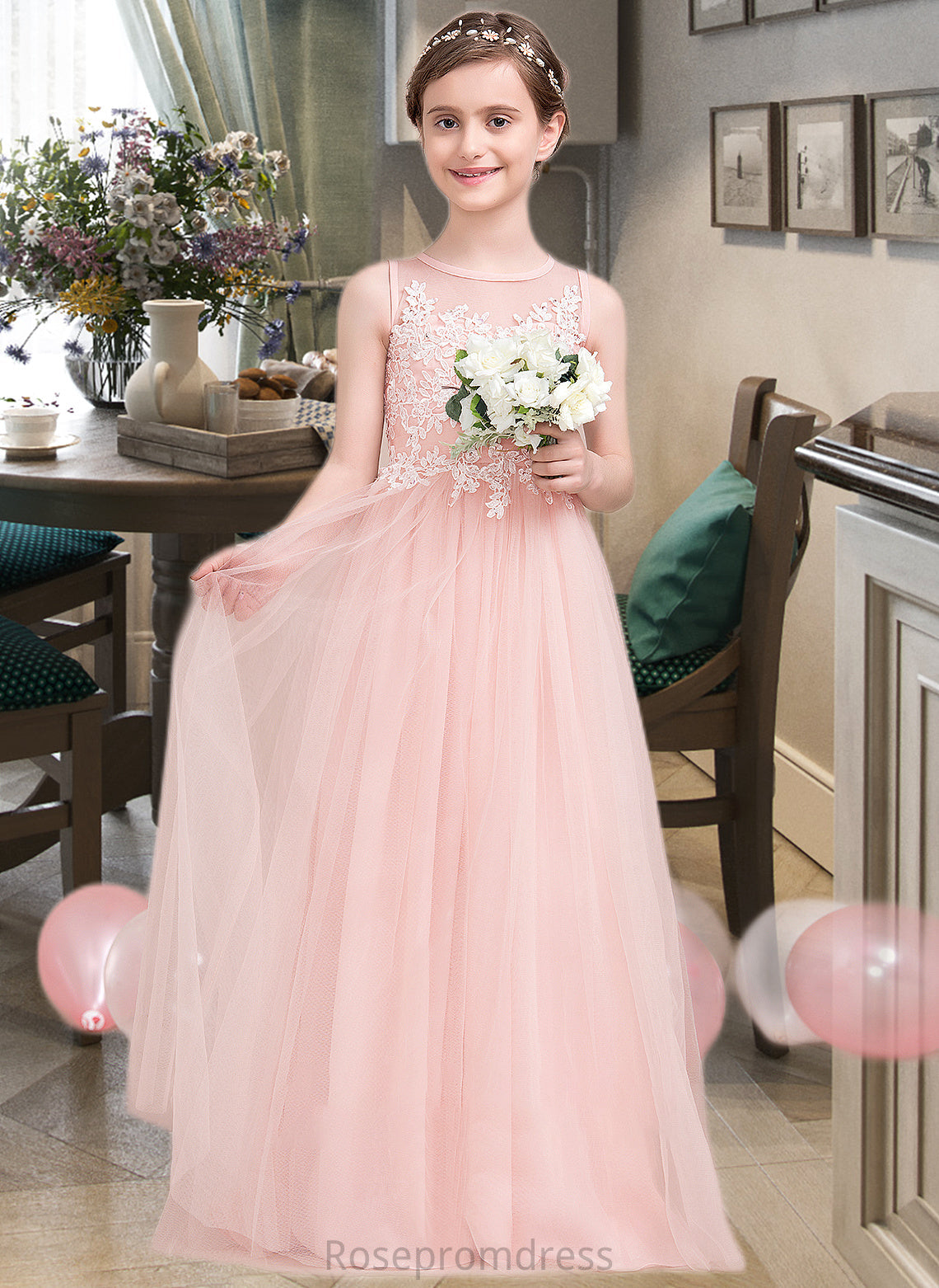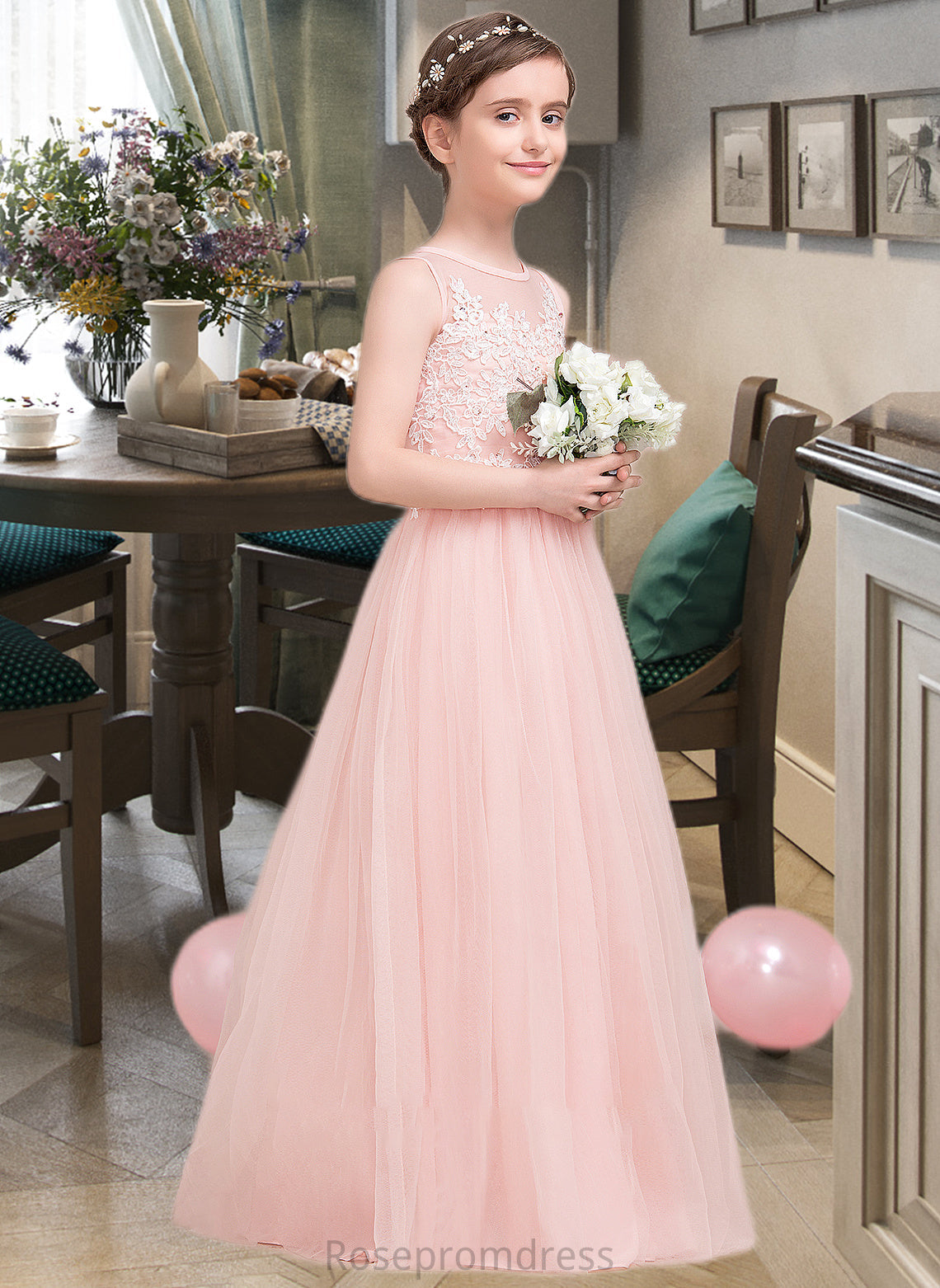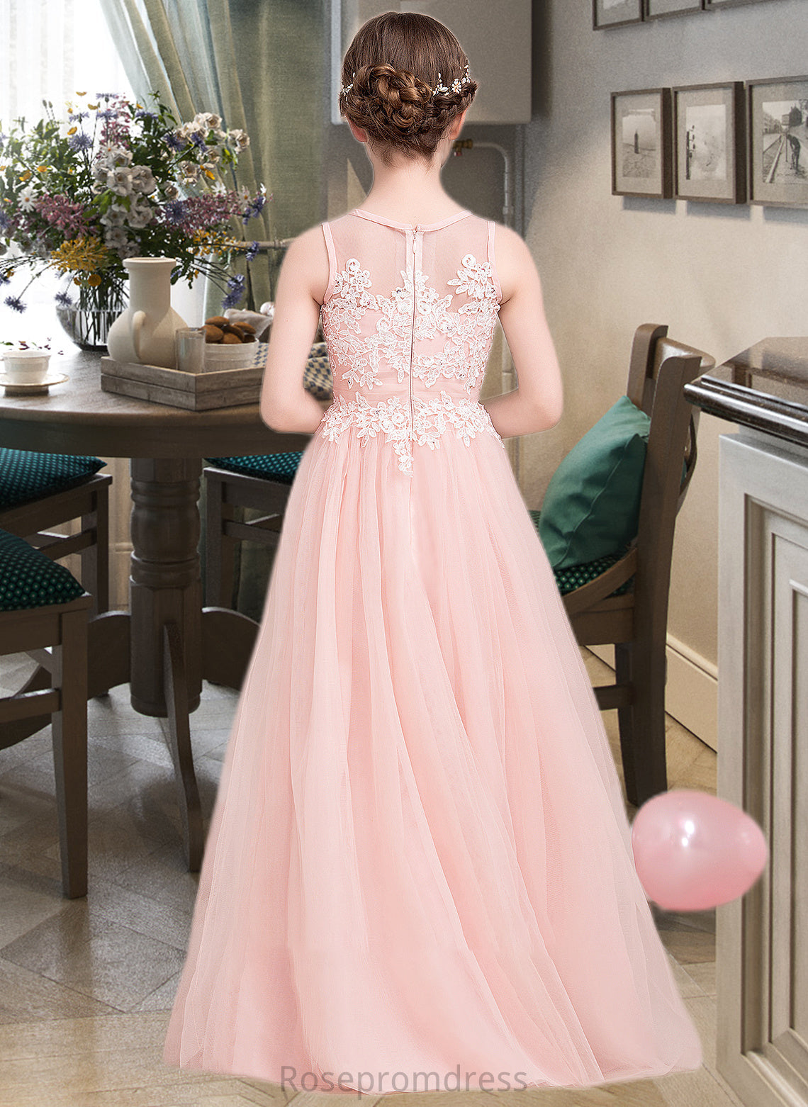 Mariela A-Line Scoop Neck Floor-Length Tulle Junior Bridesmaid Dress With Beading Sequins SRSP0013444
